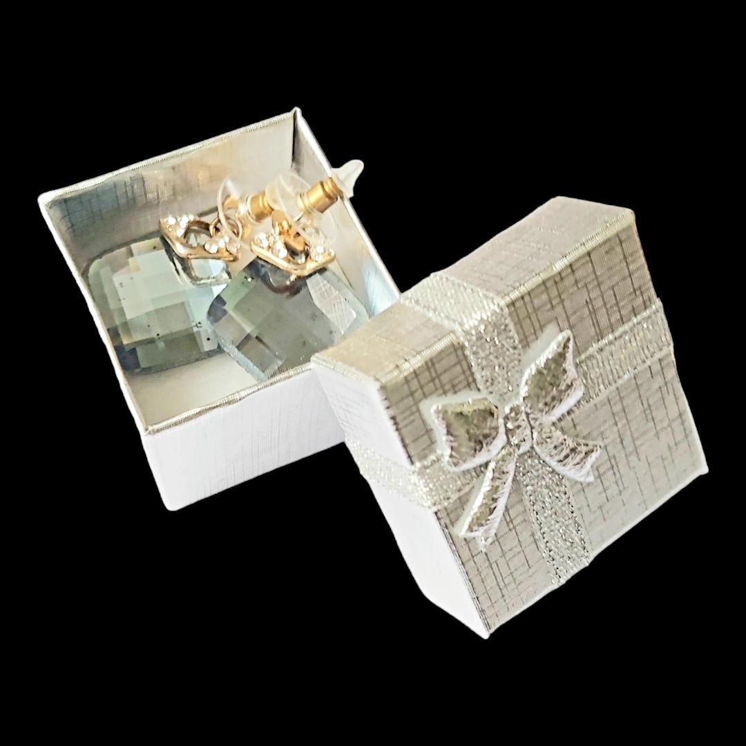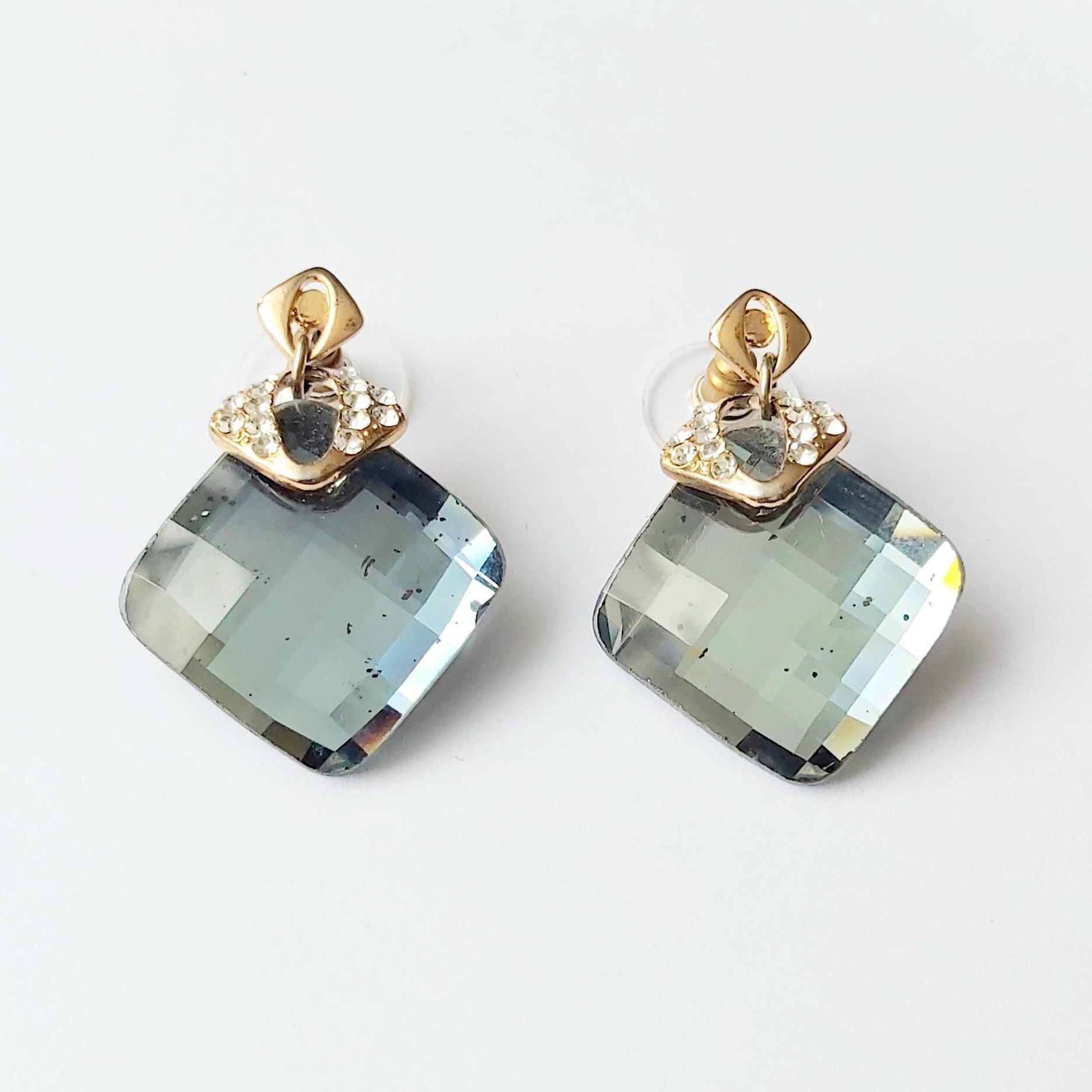 Unused Vintage from the 2000s. This is a lovely pair of vintage 14K gold-plated stud earrings, each featuring an square-cut blue Swarovski crystal and round-cut diamond imitations. Designed with a classic push-back closure.