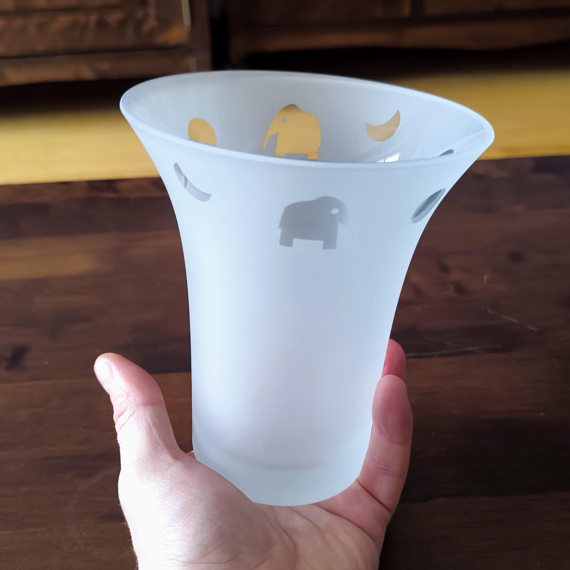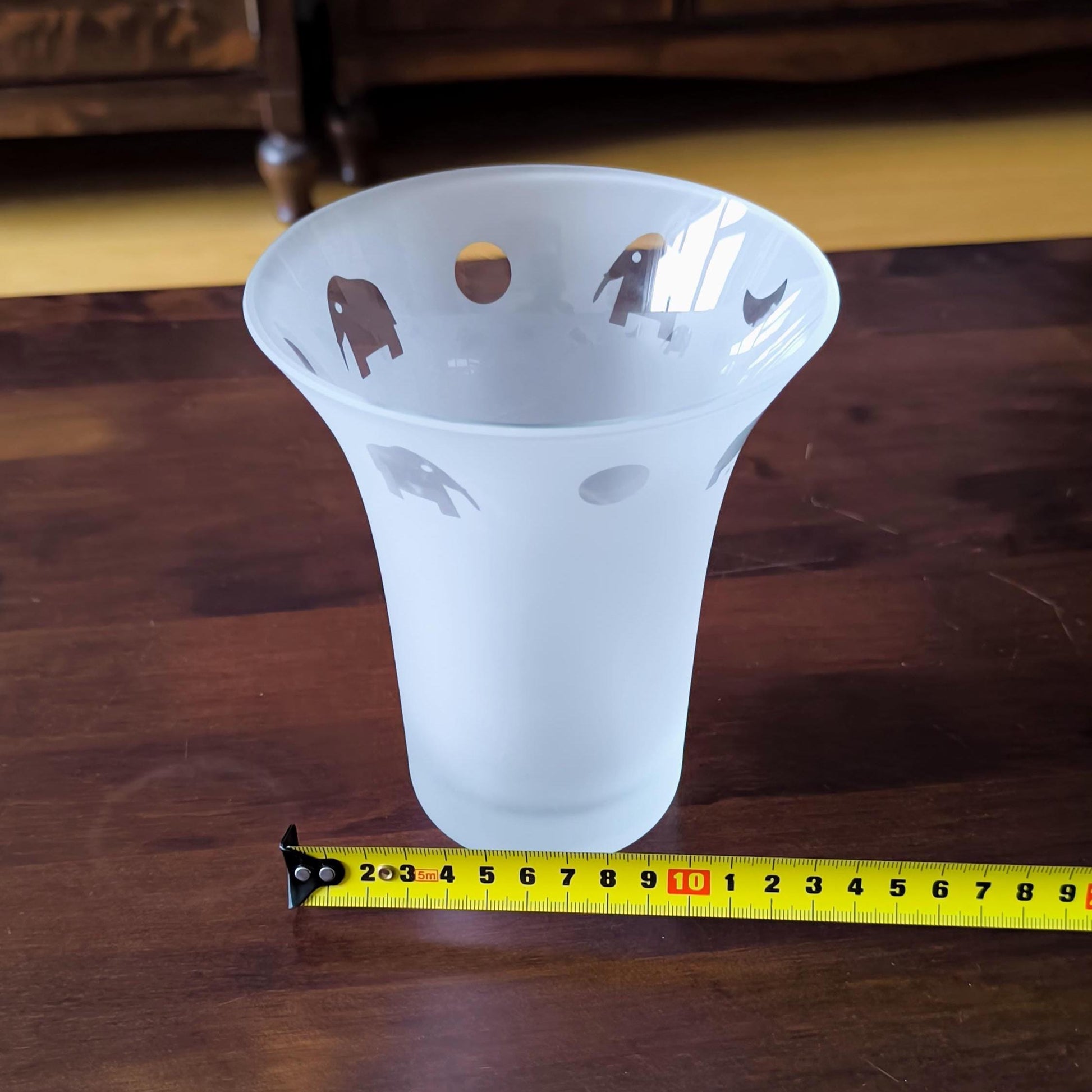 Frosted Glass Vase with clear Elephant motive, Postmodern 1980s.
