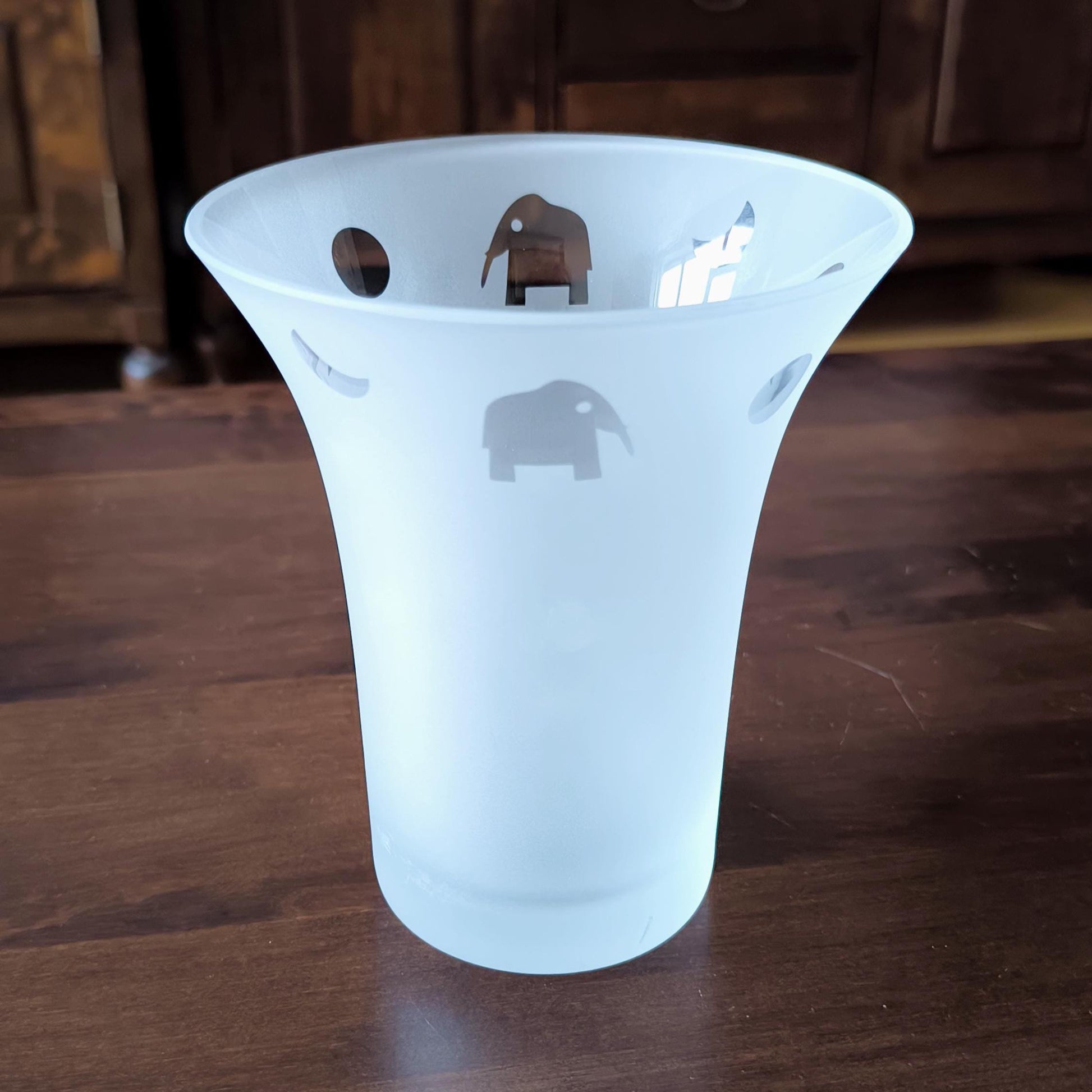 Frosted Glass Vase With Clear Elephant Motive, Postmodern 1980s.