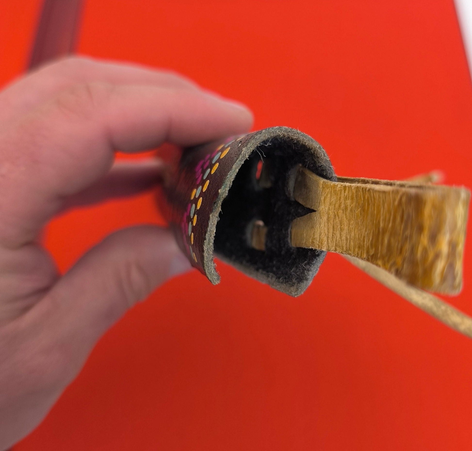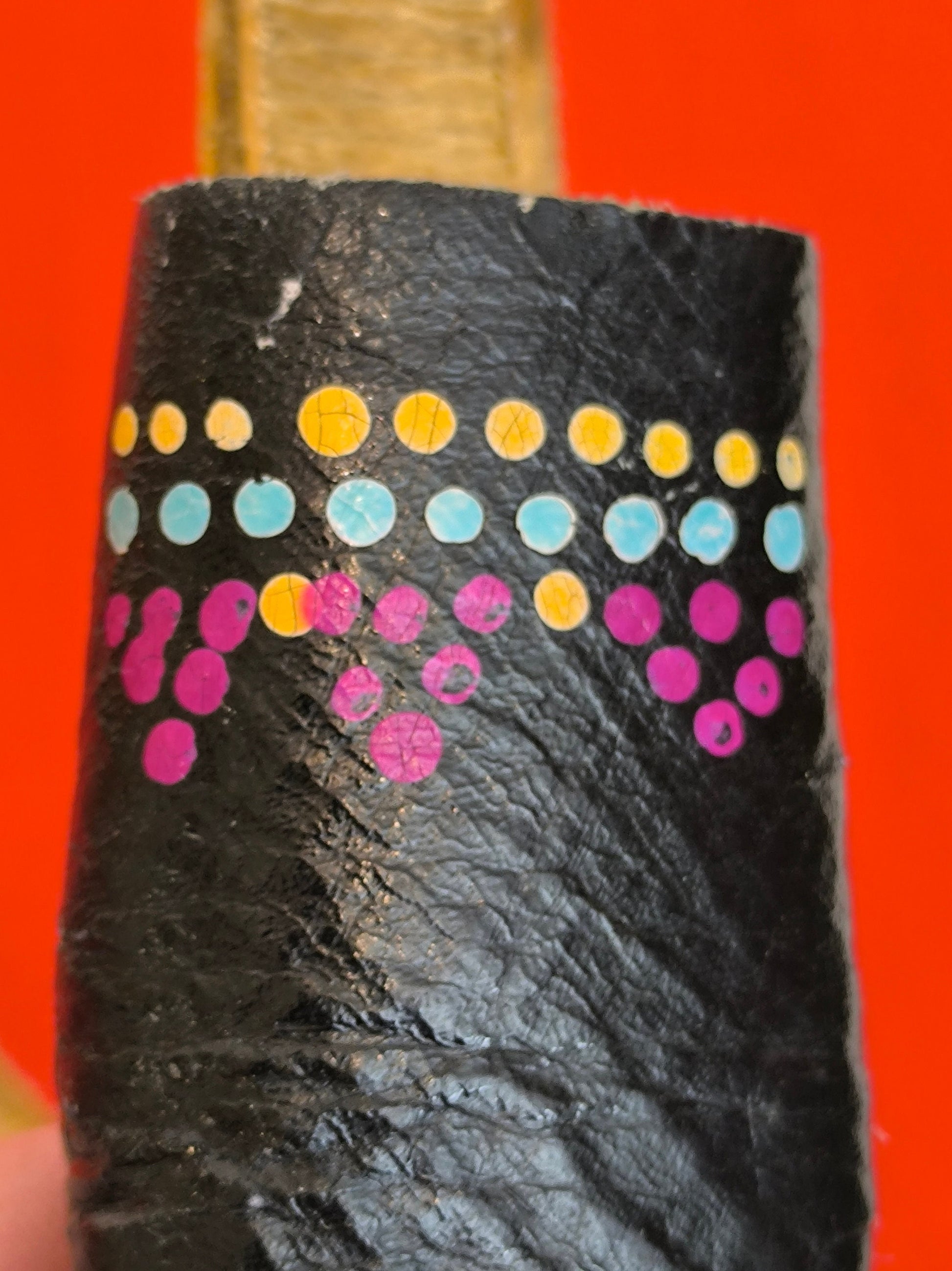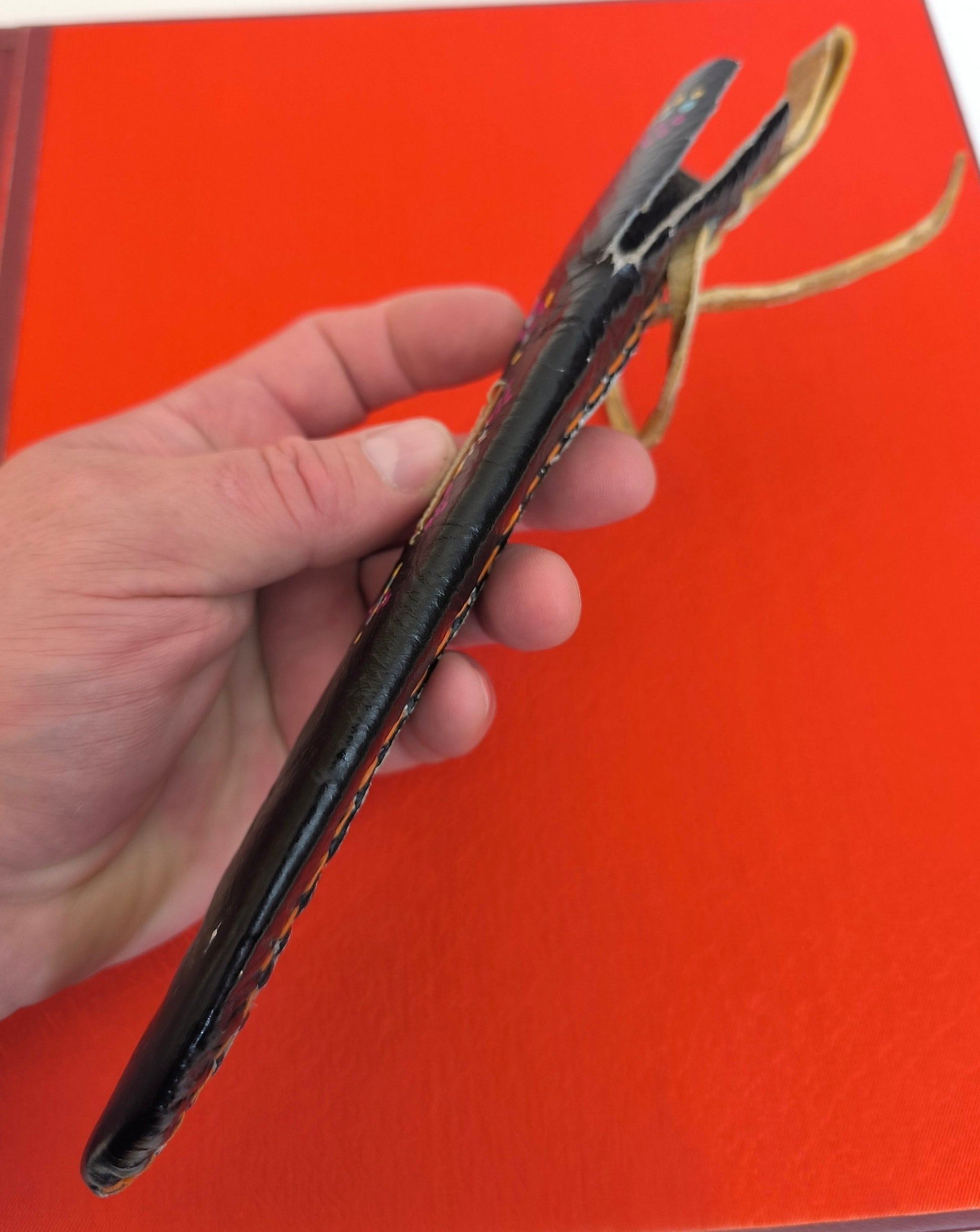 This beautiful vintage leather sheath is designed for the authentic Uzbek National Knife, Pchak. Handcrafted with intricate, colorful ornaments, this sheath hails from the Soviet Union era of the 1970s.