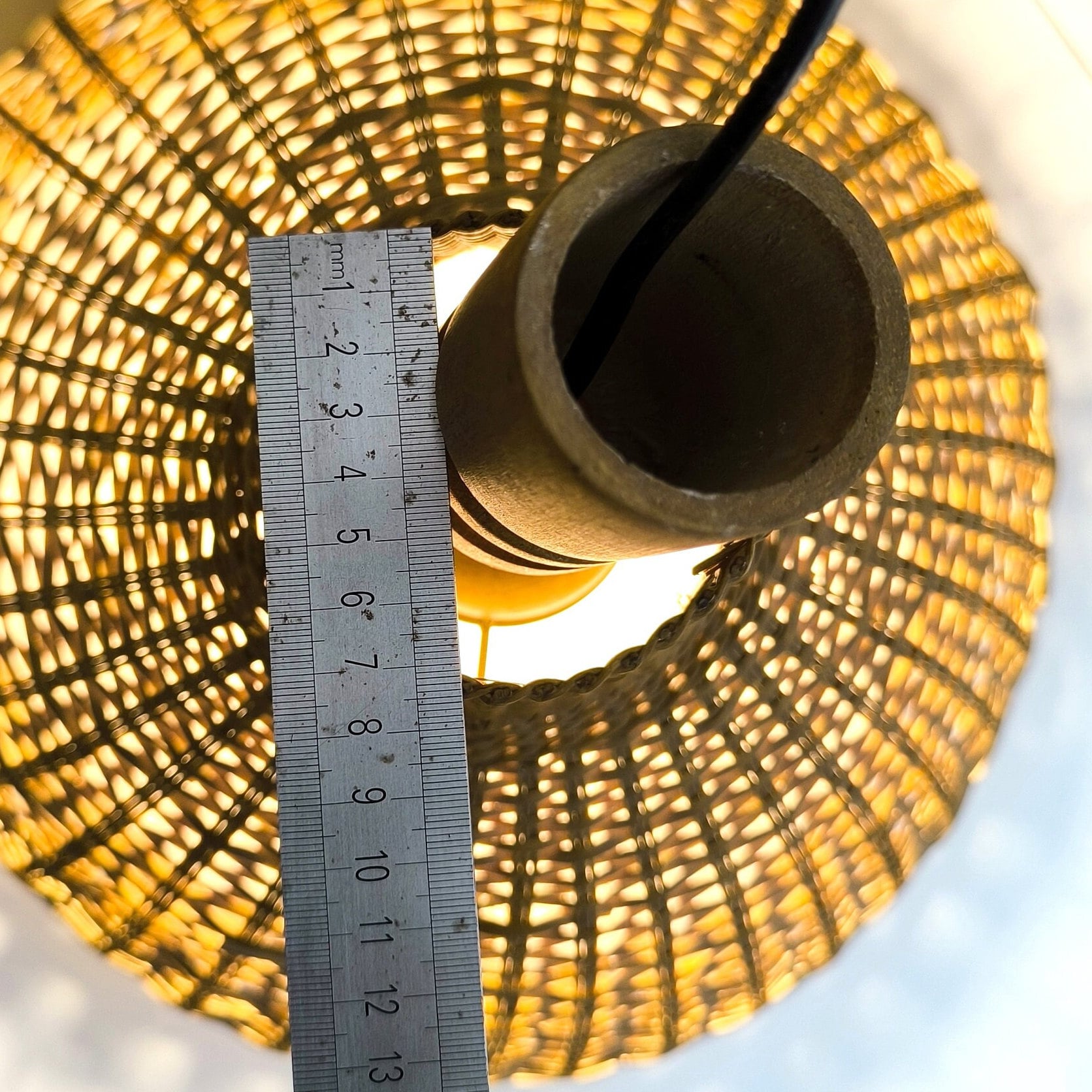 This beautiful and rare 70s hanging wicker lamp features an original design from the Soviet Union's Mid Century era. With its modern design, this ceiling lamp provides a vintage mid-century aesthetic.