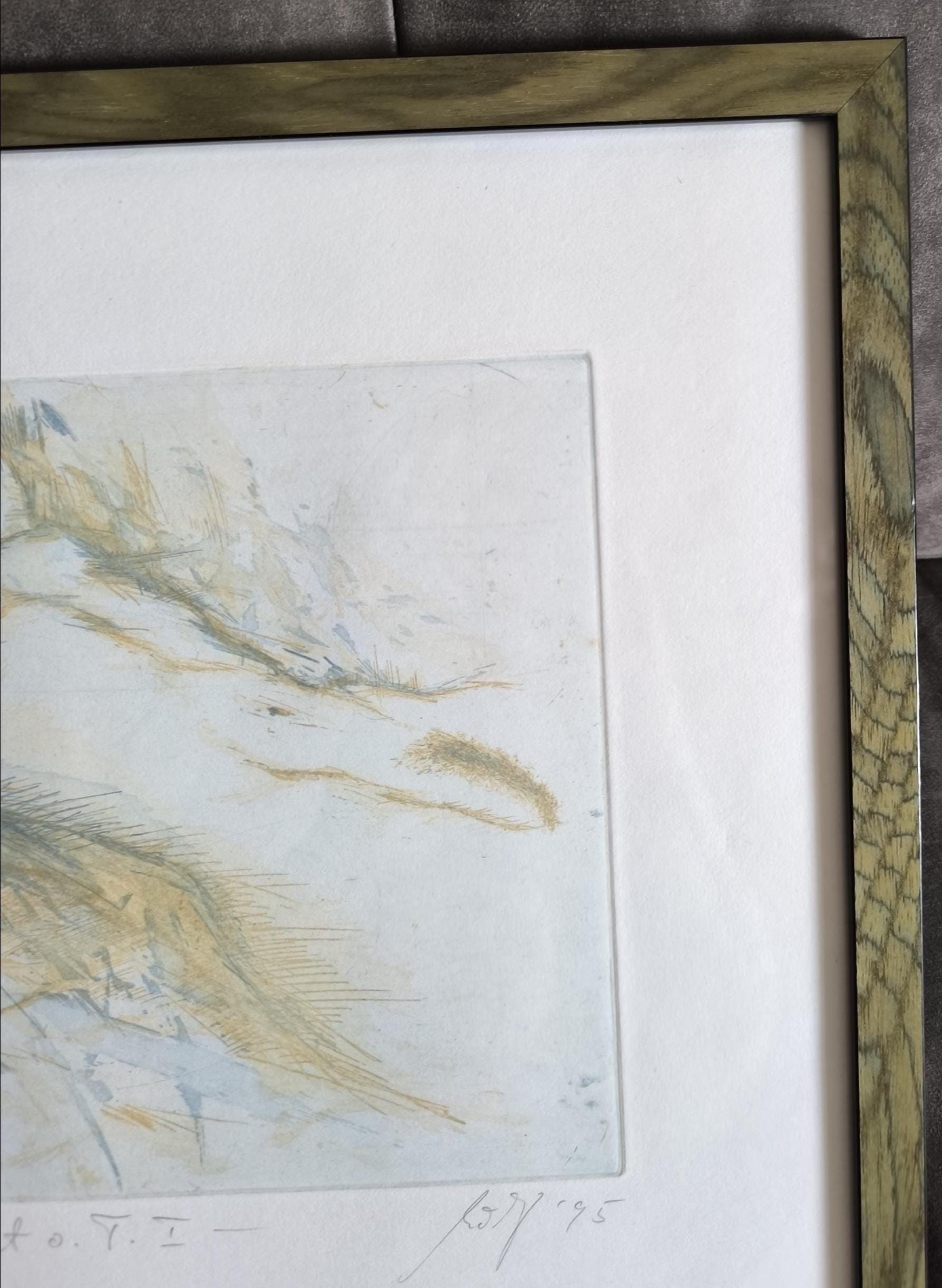 Original limited edition lithograph of a nude female body by German artist Hannes Möller (b. 1954), numbered 24/99 and hand-signed in 1995. The work is professionally framed (41 × 46 cm) and reflects Möller’s expressive figurative style from the mid-1990s. A fine example of contemporary German printmaking.