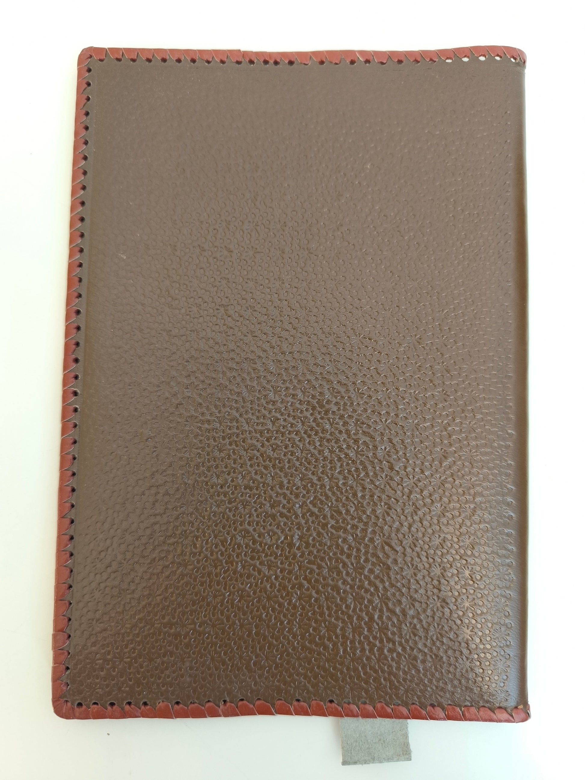 This beautiful vintage genuine leather notebook cover originates from Lithuania and dates back to the 1980s. It measures 22 x 15 cm (8.66 x 5.91 inches) when closed.