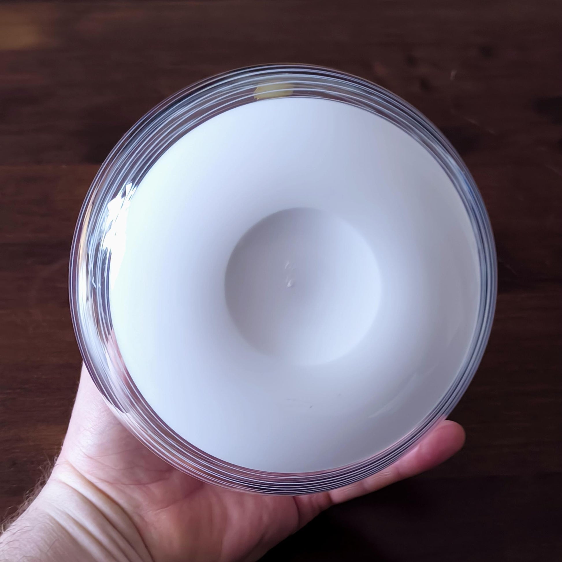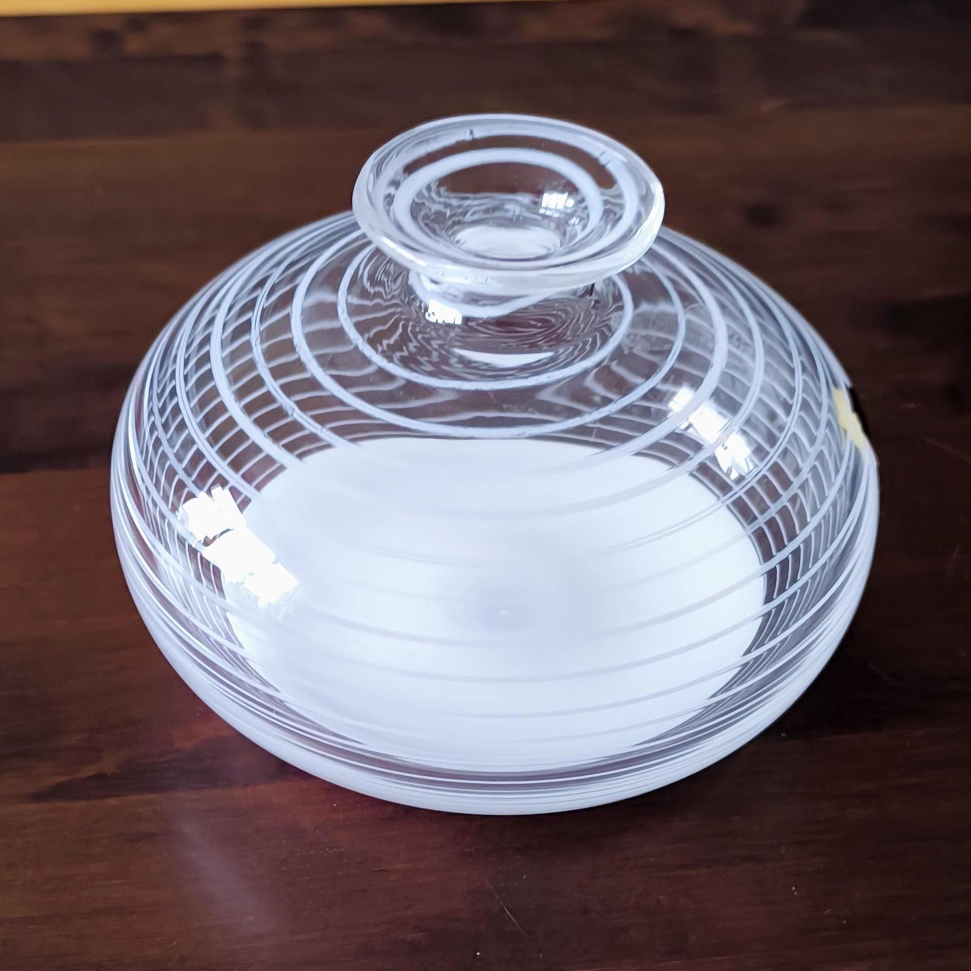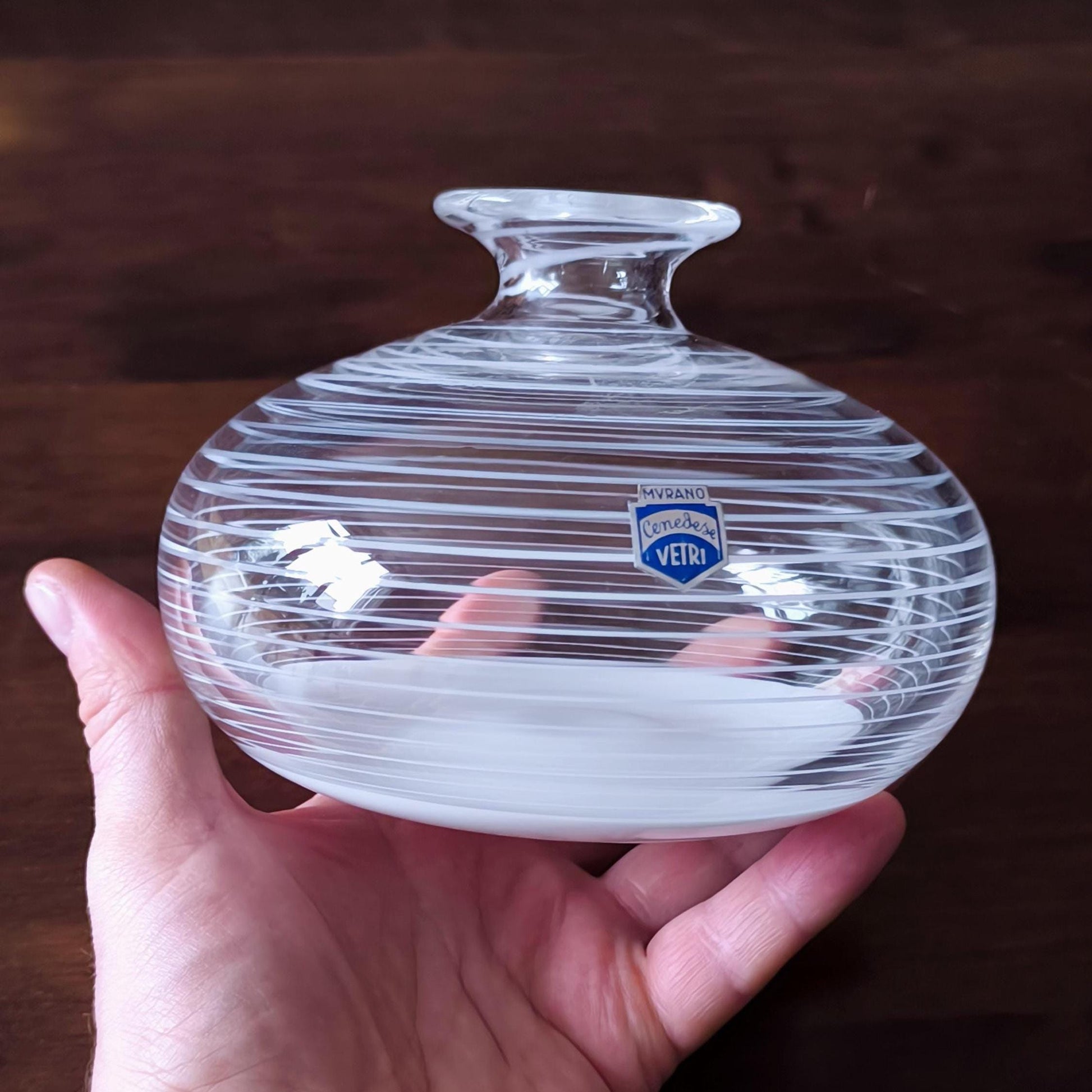 Murano Glass Round and Striped Vase 1980, Original Handmade Clear Crystal