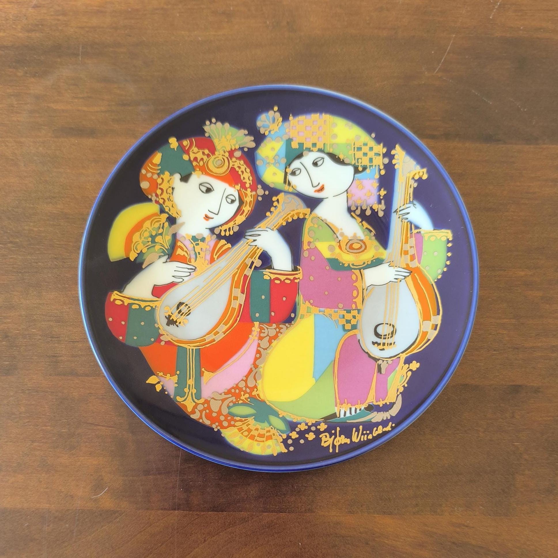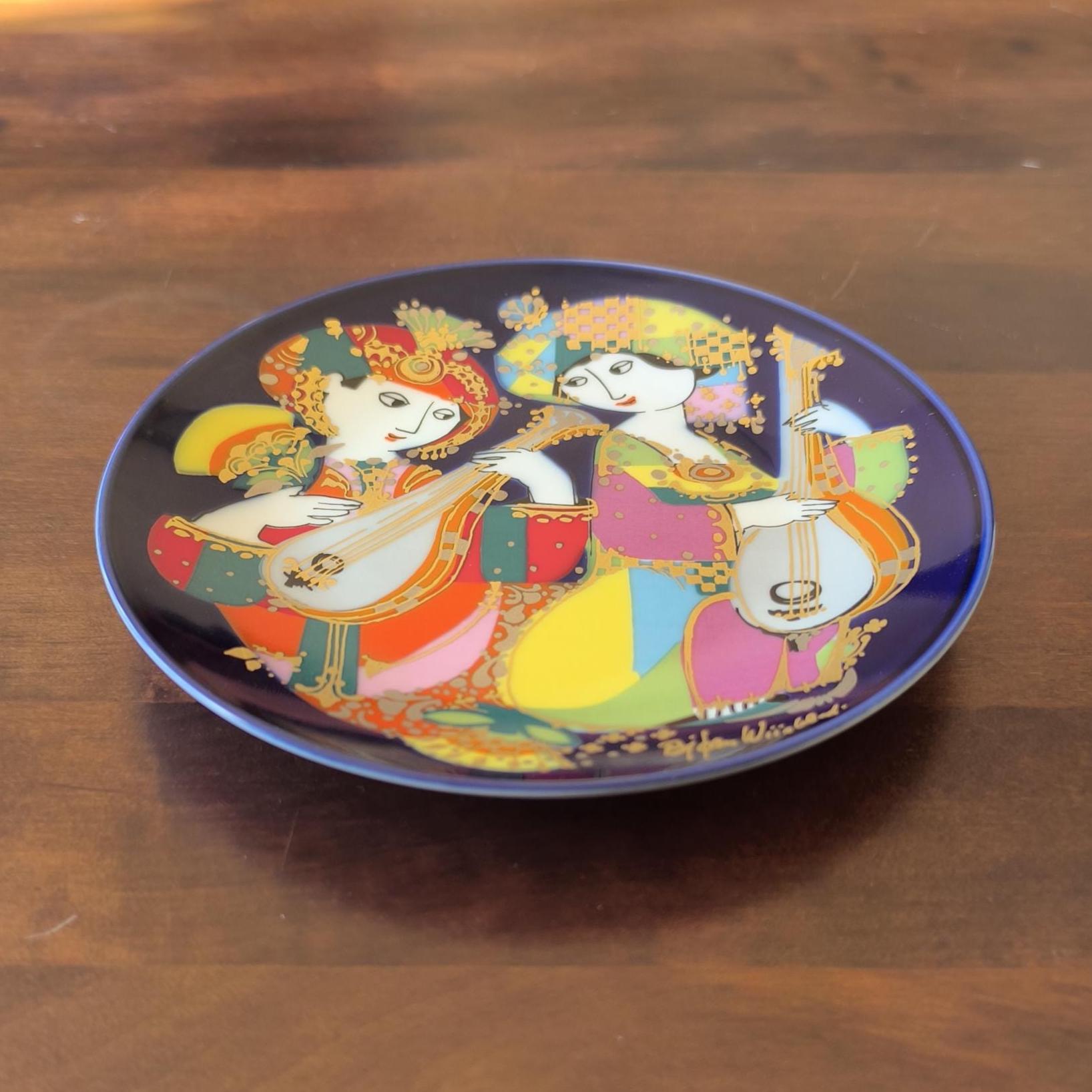 1976 Rosenthal Studio Line porcelain plate, designed by Bjørn Wiinblad. Motif 2: Mandolin Player from the "Oriental Night Music" series. Collectible and ready to hang.