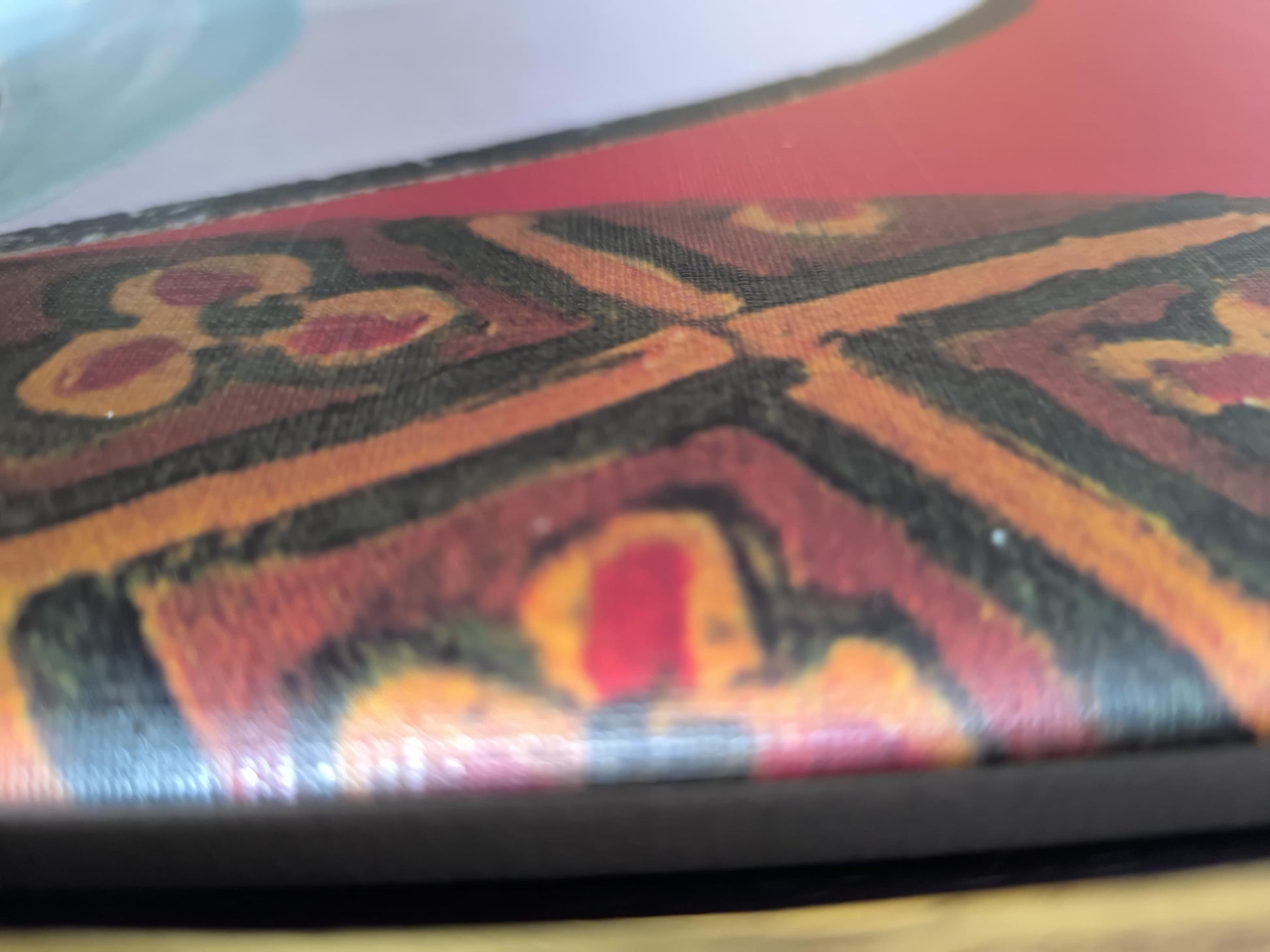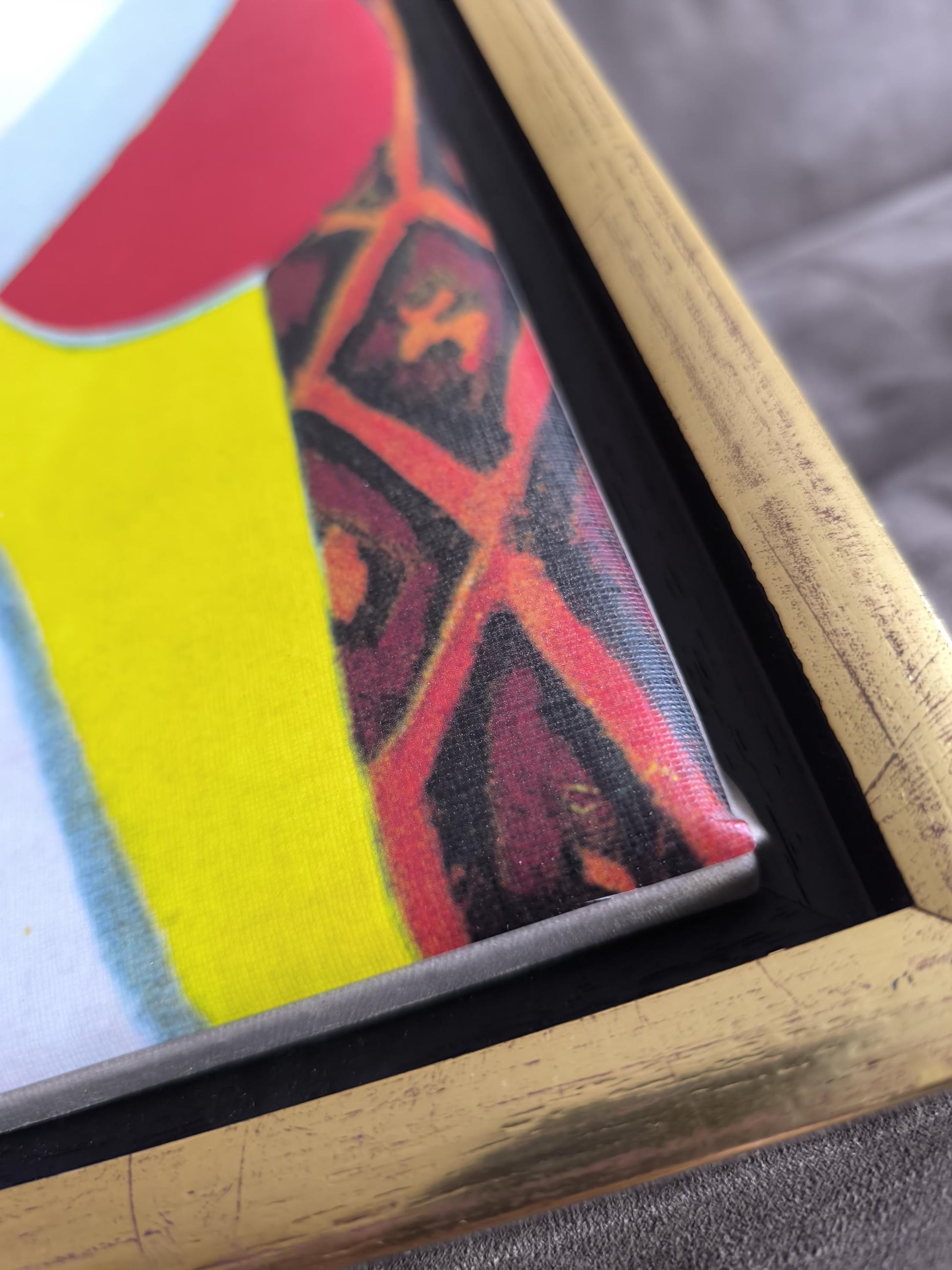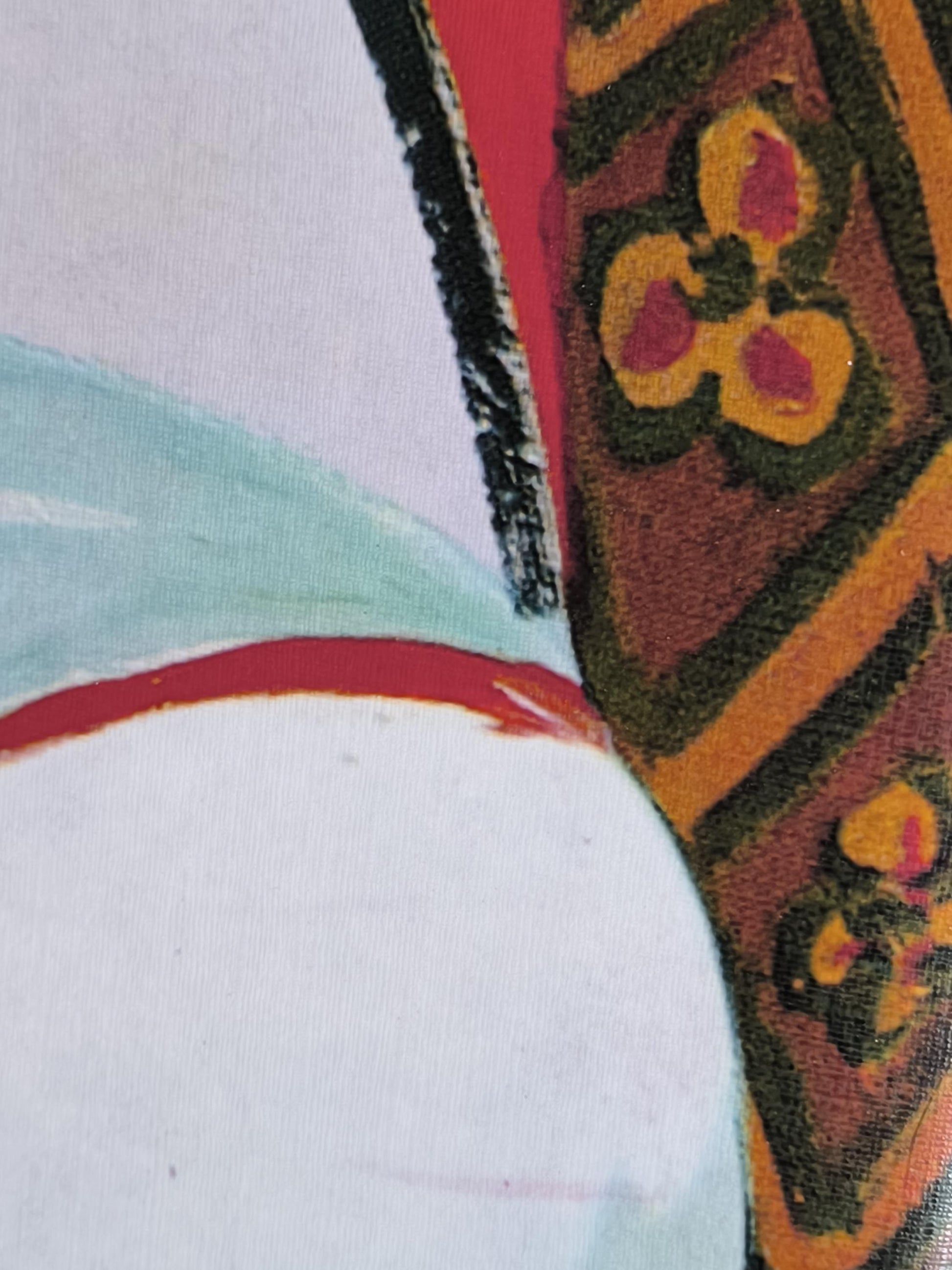 Framed canvas print of Pablo Picasso’s famous work "Dream". Produced in 1980 from a vinyl lithograph or linocut plate. The piece features a printed Picasso signature and is presented in a wooden frame. Dimensions: 65 × 80 cm with frame, 60 × 75 cm without frame. A striking and colorful reproduction that captures the essence of Picasso’s original style.