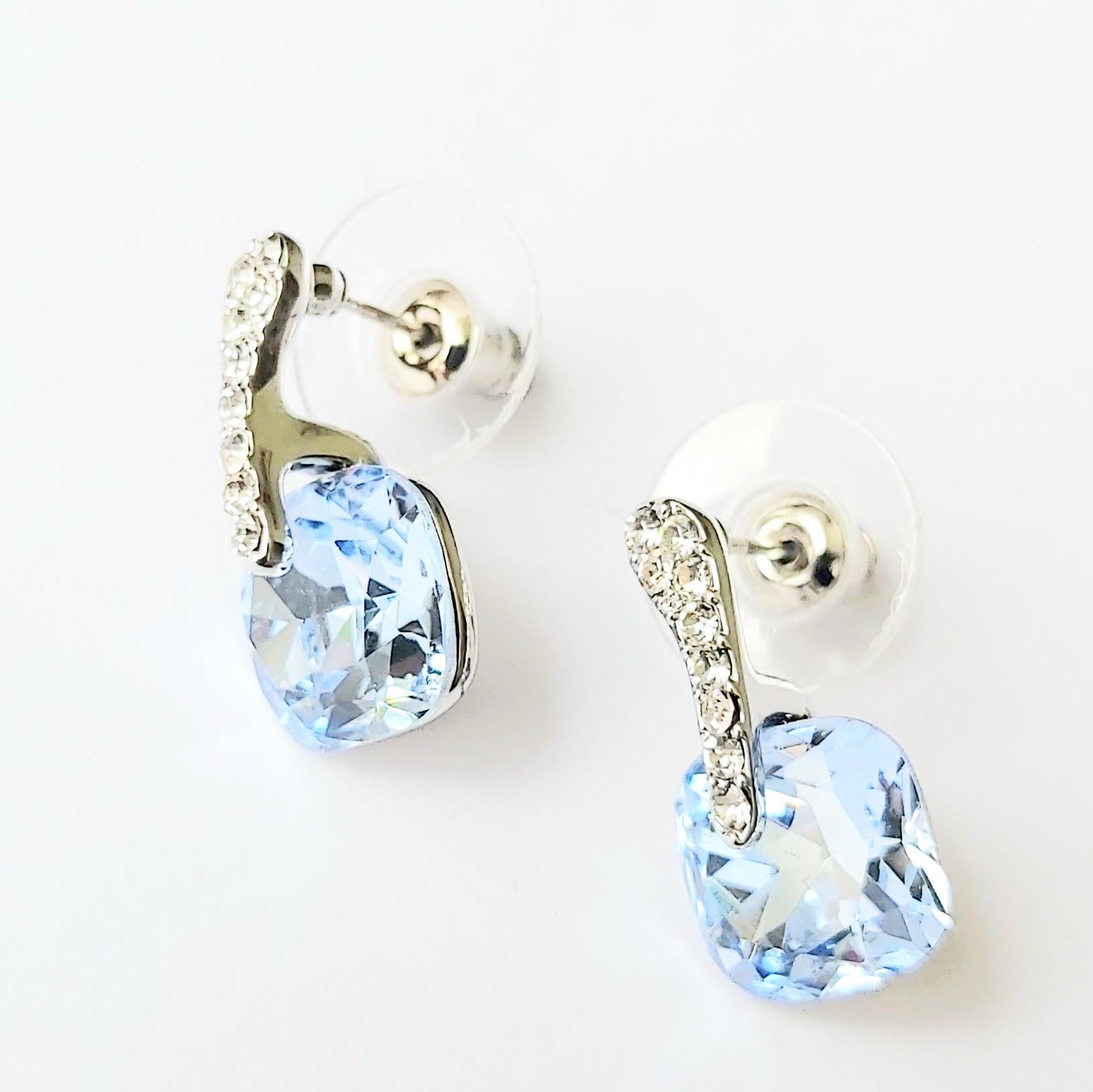 This is a lovely pair of vintage white14K gold-plated stud earrings, each featuring an square-cut Topaz imitation with round-cut diamond imitations. Designed with a classic push-back closure.