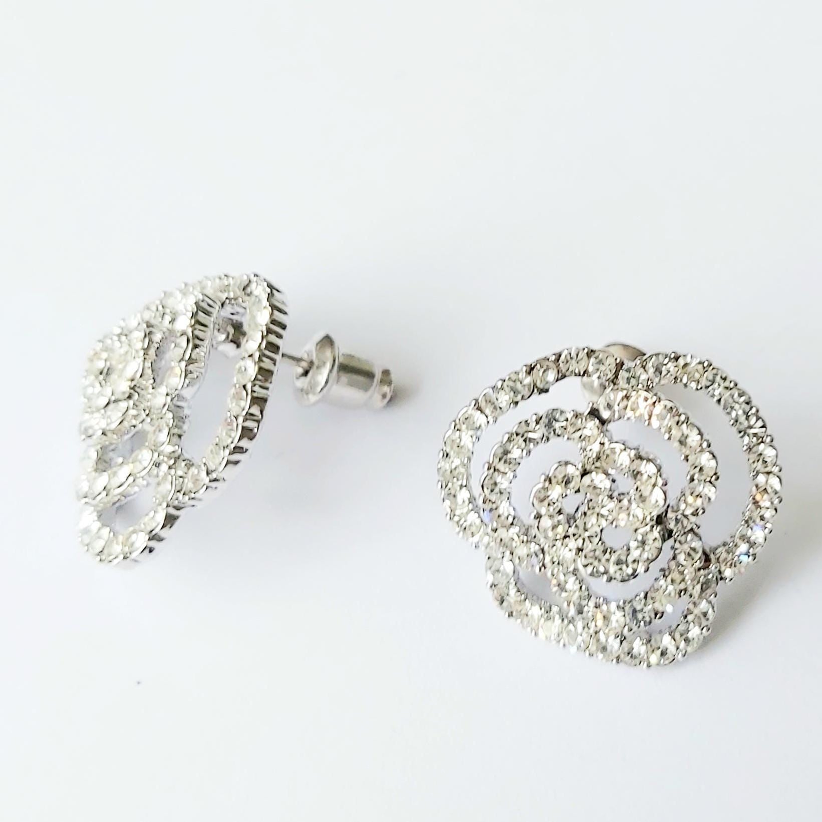 Pair of Vintage 2000s Silver-Tone 14K Gold-Plated Flower Stud Earrings with Crystals