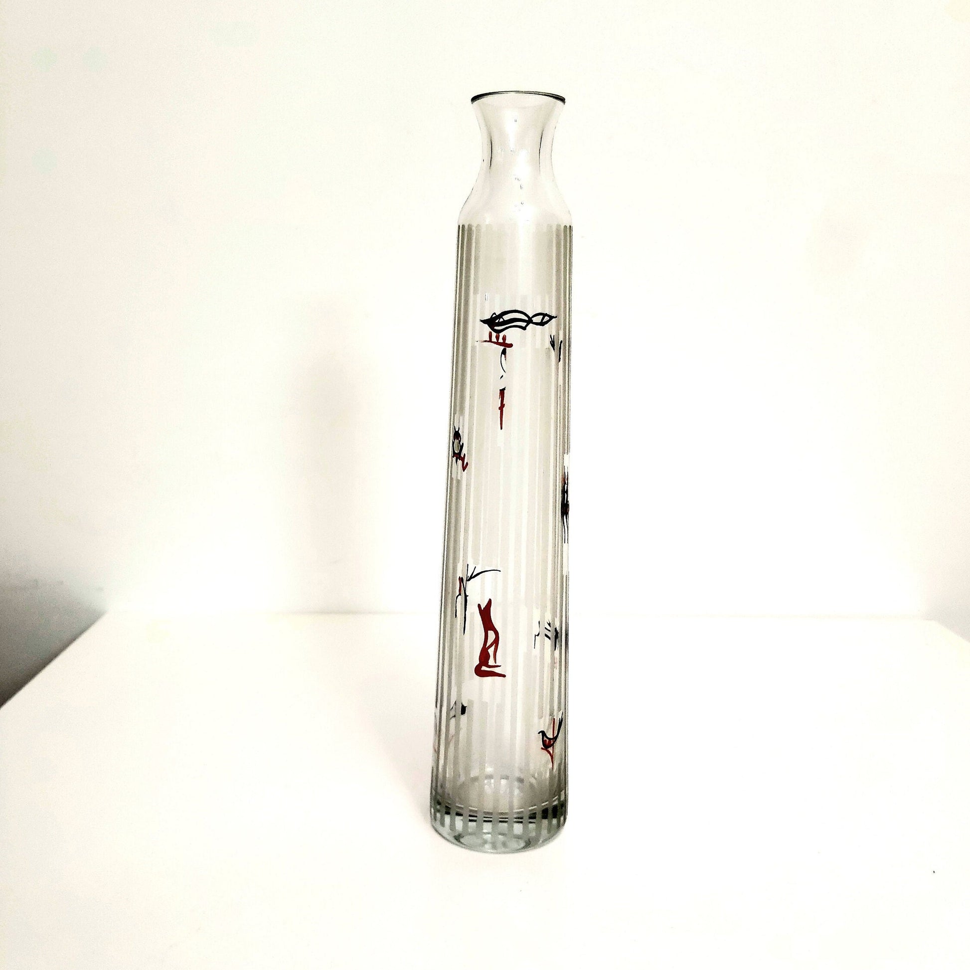 Vintage Clear Glass Vase, Medium-Sized Patterned Glass Vase, Clear Scandinavian Vase.