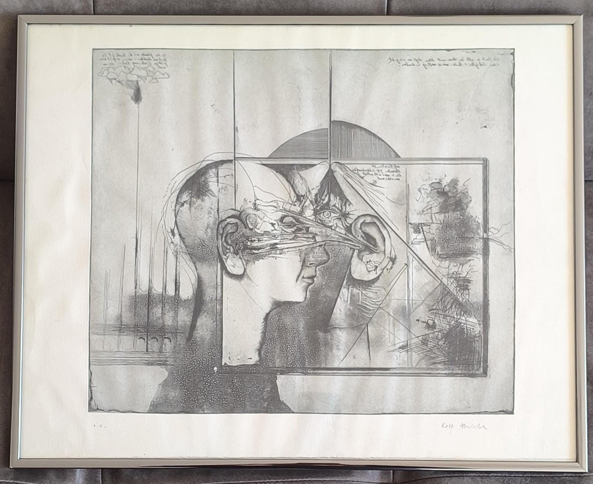 Rolf Nuhn "Ego-Masochist" Framed Artwork, Surrealist Psychological Style