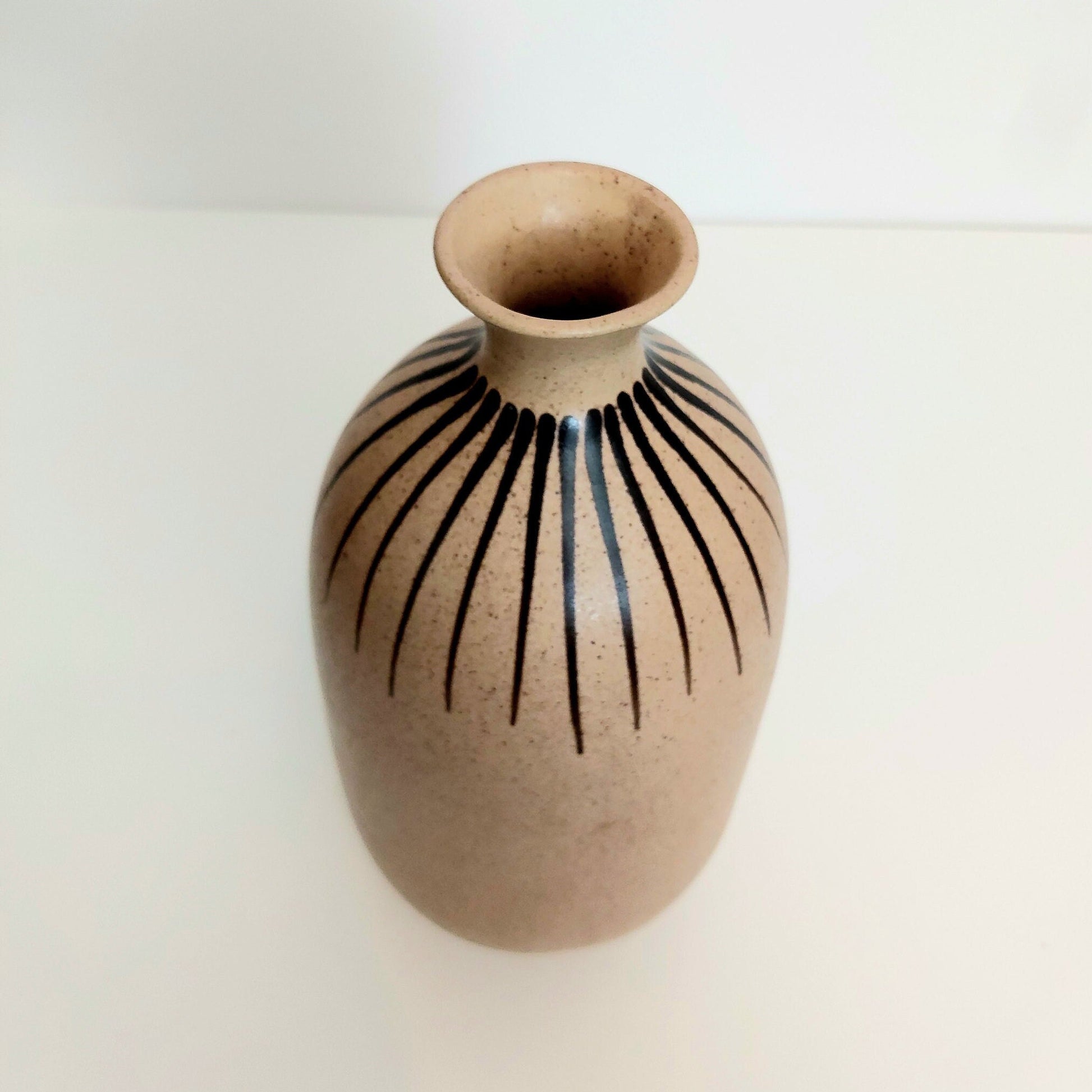 Vintage Ceramic Clay Vase, Medium Brown Striped Vase, Hazel Striped Vase, Beige Vase, Scandinavian Ceramic Vase, Scandinavian Pottery.