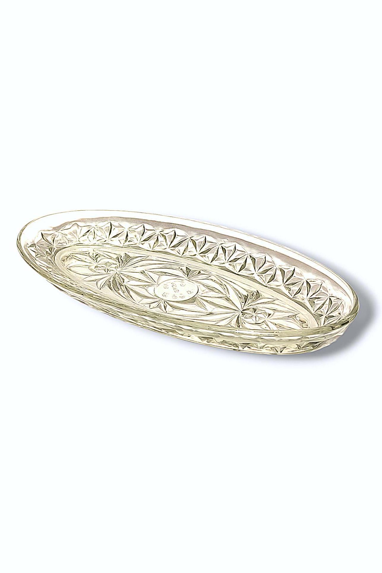 Serving Dish Clear Glass Crystal Salad Bowl or Herring Platter 1970s