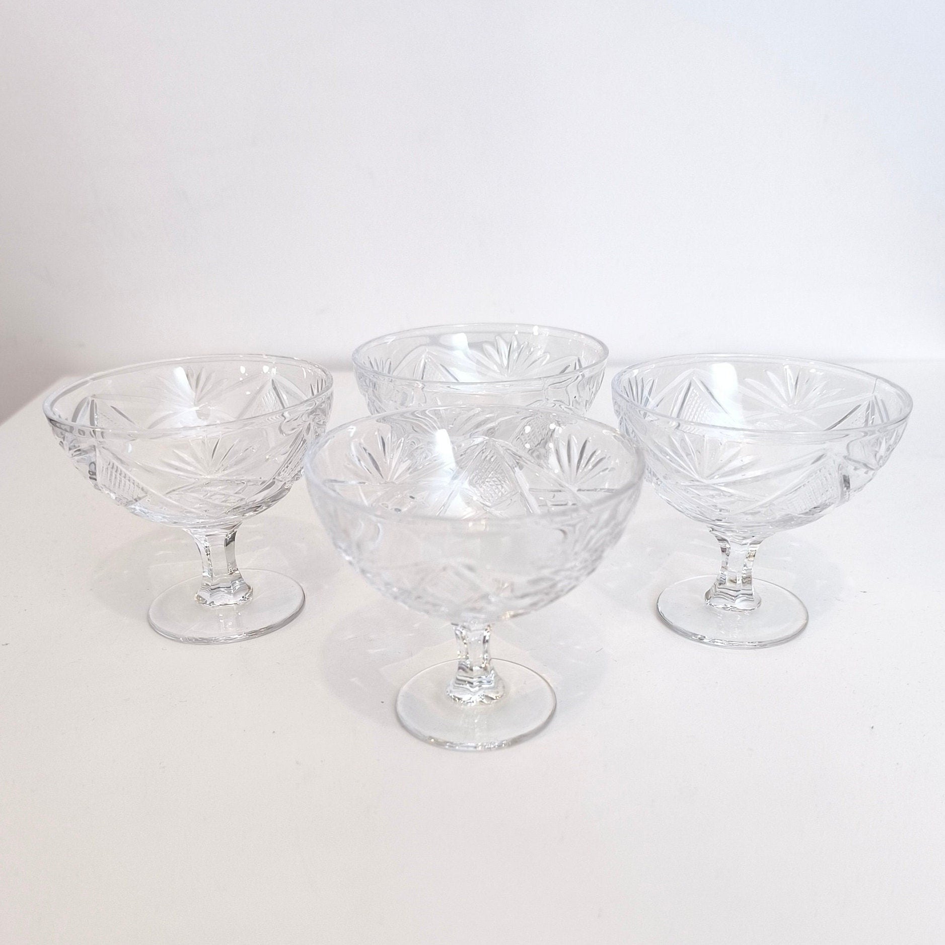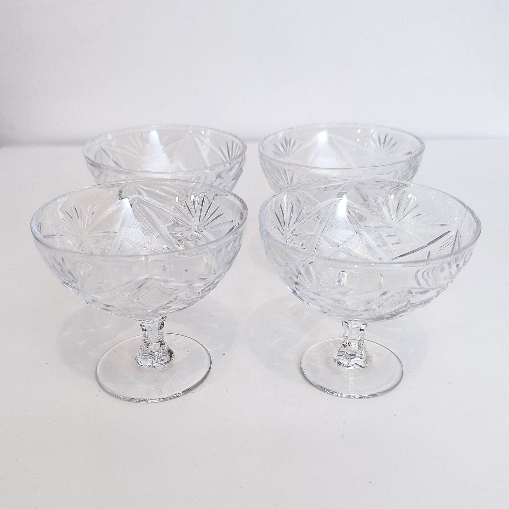 Set of 4 Sparkling Wine Glasses. Vintage Ice Cream Cups. Pressed Glass Crystal Dessert Cups, Made in Soviet Union, 1970s