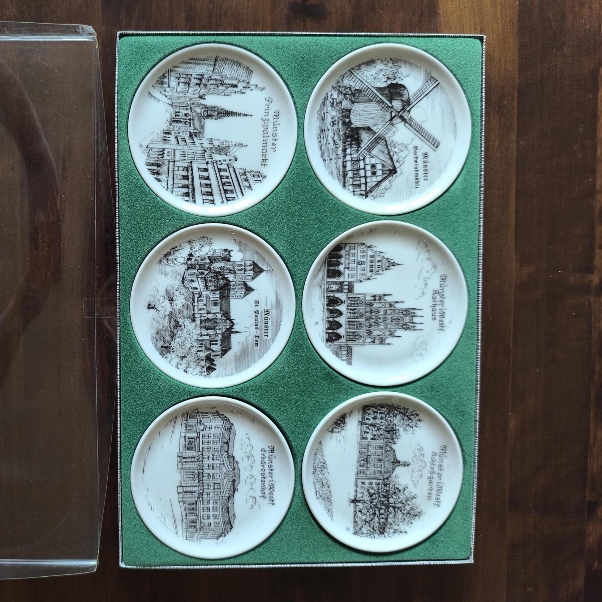 Set of 6 German Coasters with Münster Motifs, Original Box 1980s–1990s