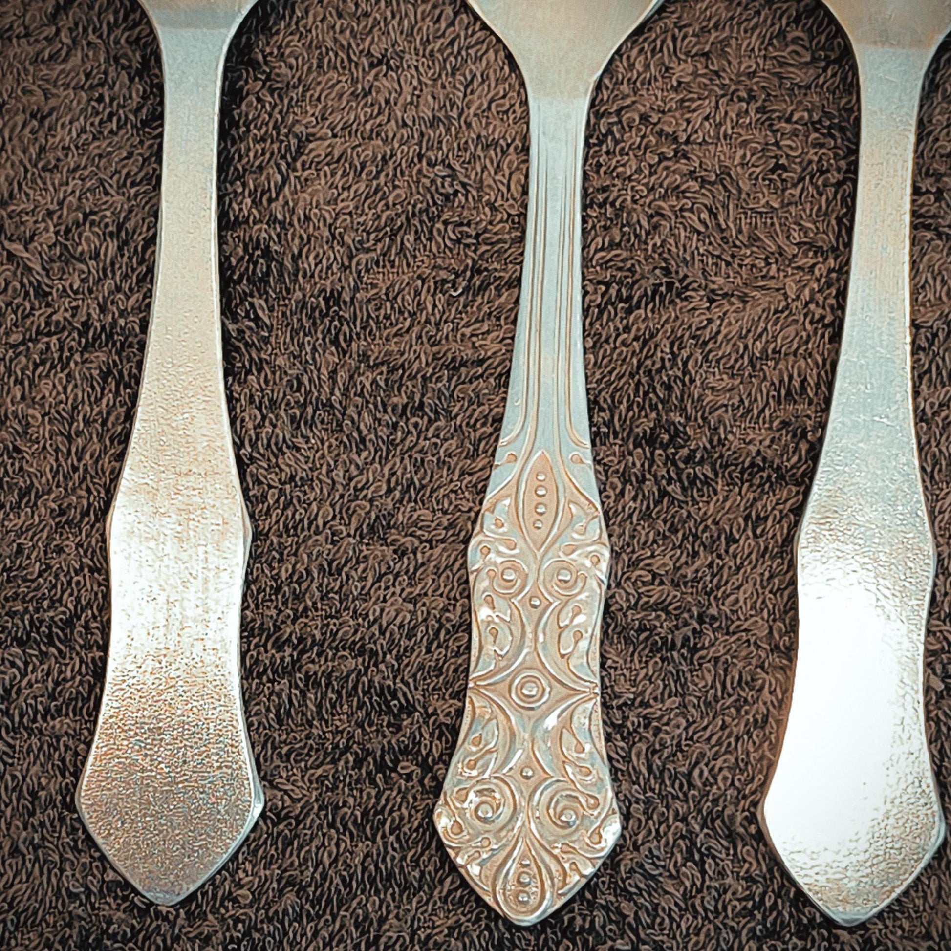 Set of 6 Melchior Silver-Tone Teaspoons with Ornamental USSR 1970s