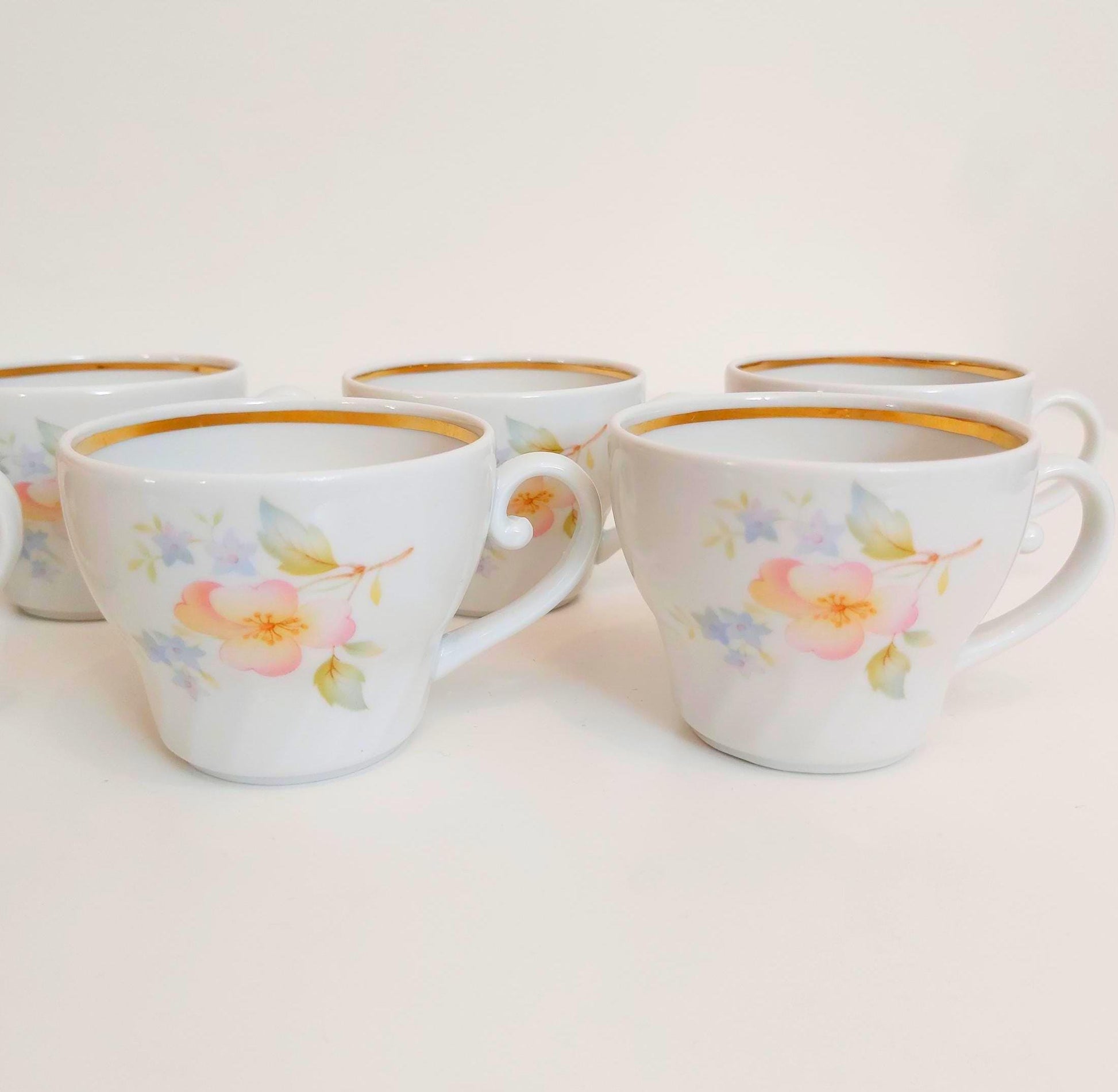 Set of 6 Small Vintage Flower Coffee Espresso Cups, Made in Belarus