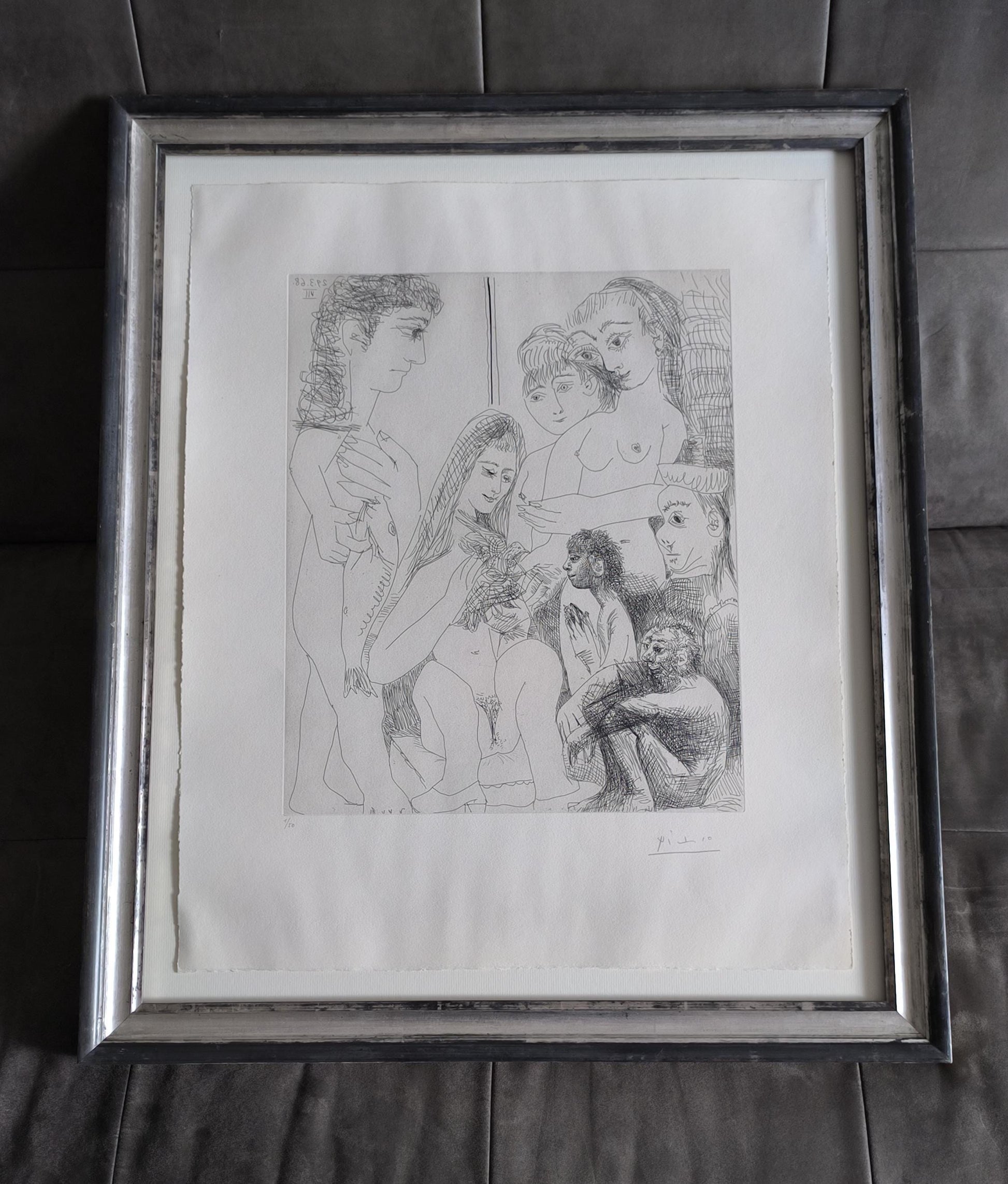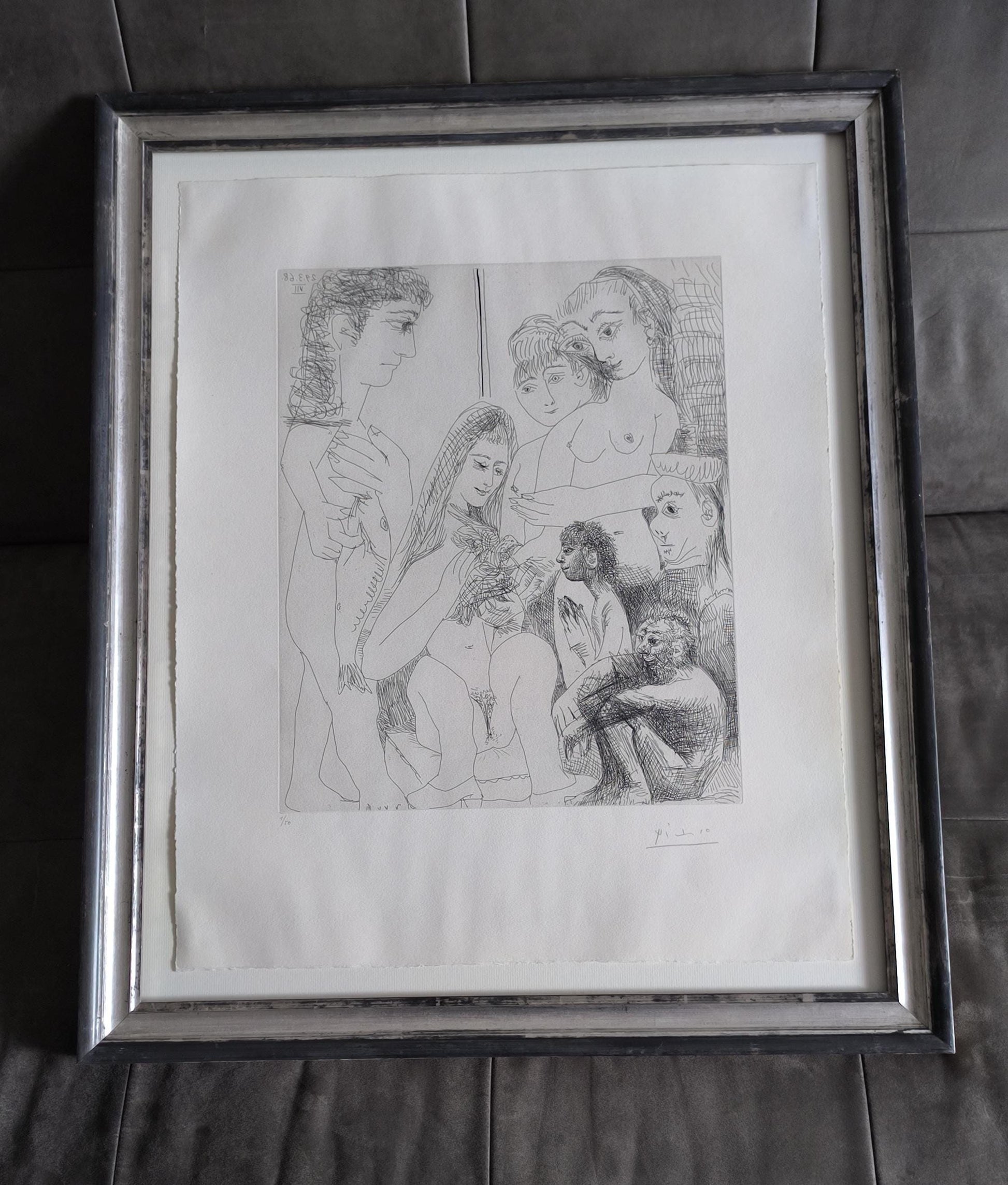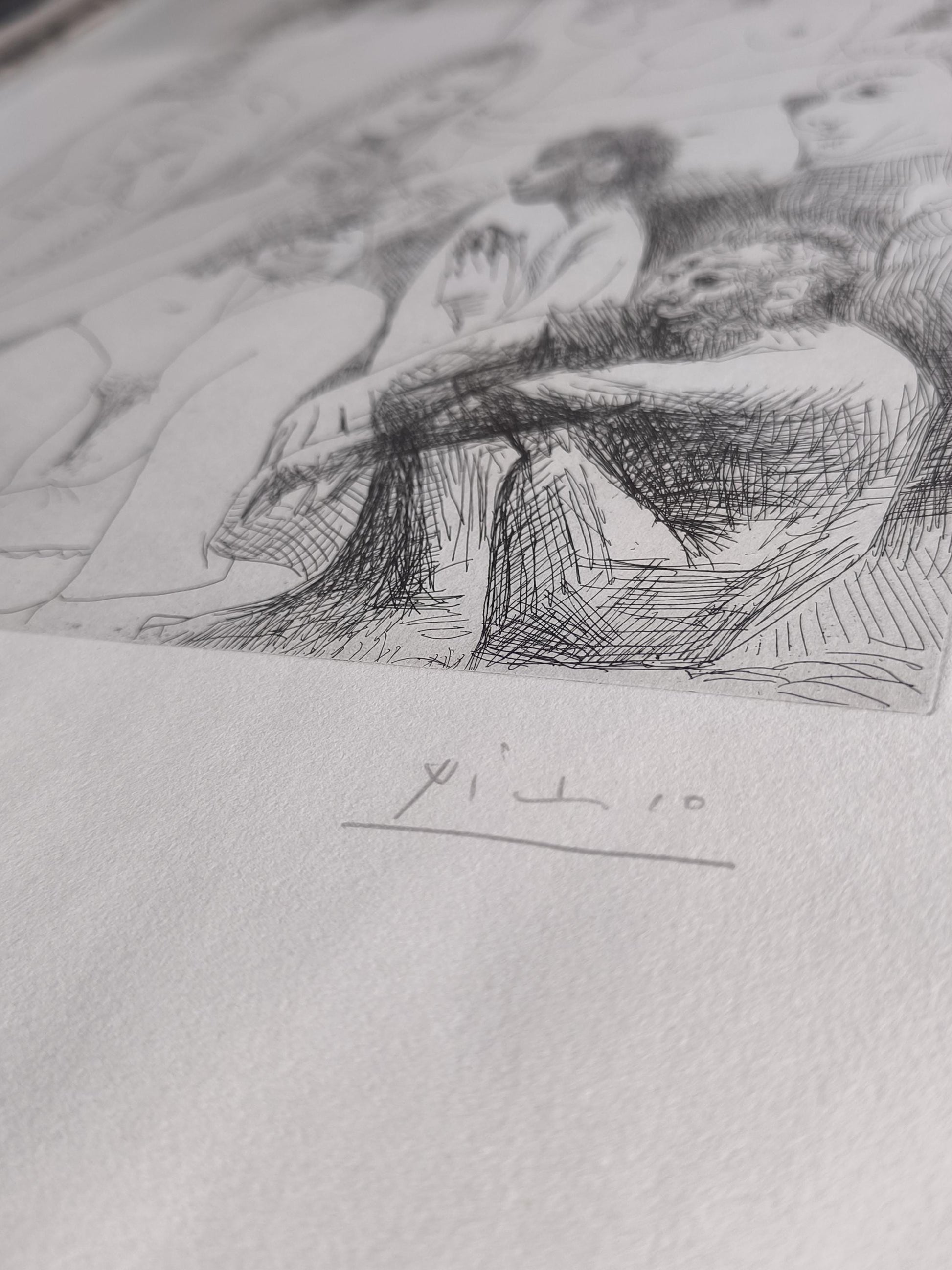 Original signed lithograph by Pablo Picasso, titled "Vieil homme songeant à la peinture ancienne" (Old Man Thinking About Ancient Painting), from the iconic Series 347, catalogued as Bloch 1492. Printed in a limited edition 1 of 50 on Rives/BFK paper, this artwork is hand-signed in pencil and numbered. A powerful and intimate piece showcasing Picasso’s late-period genius. Artwork size: 62 x 74 cm.