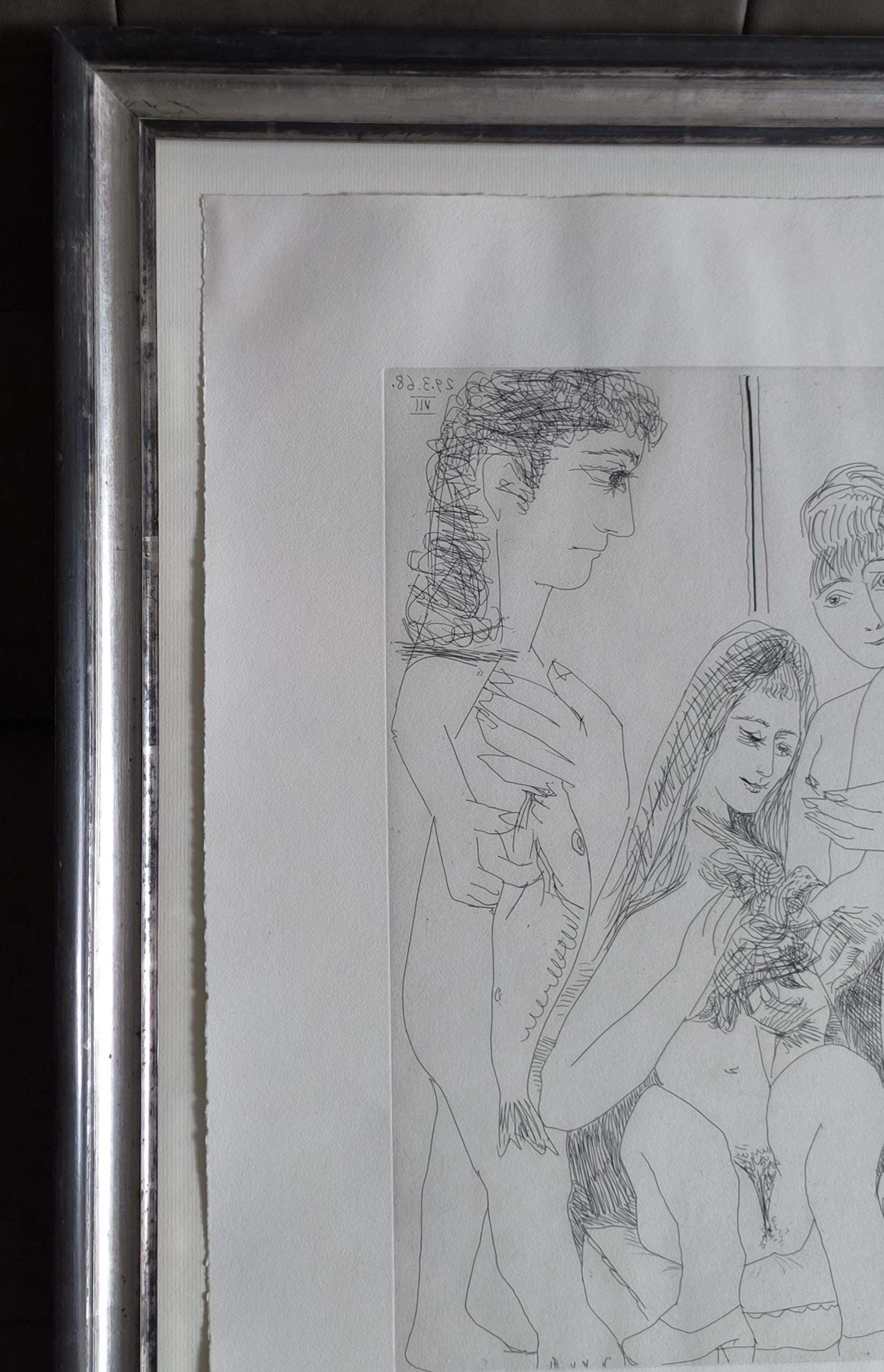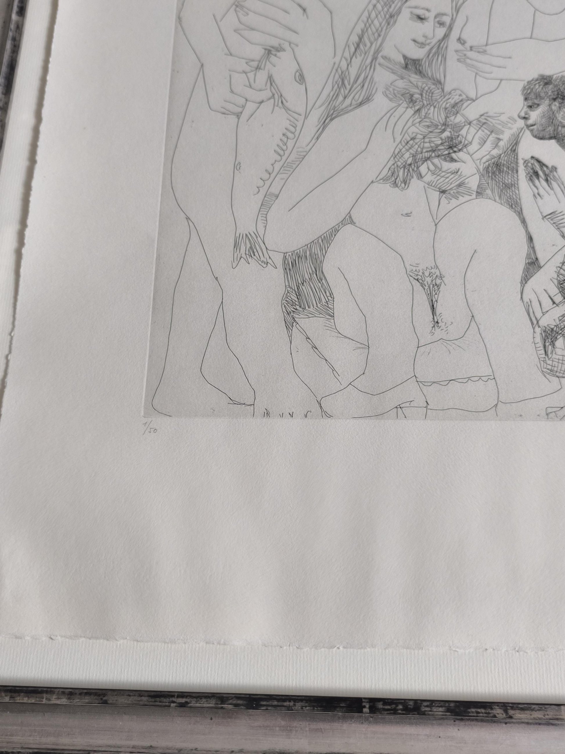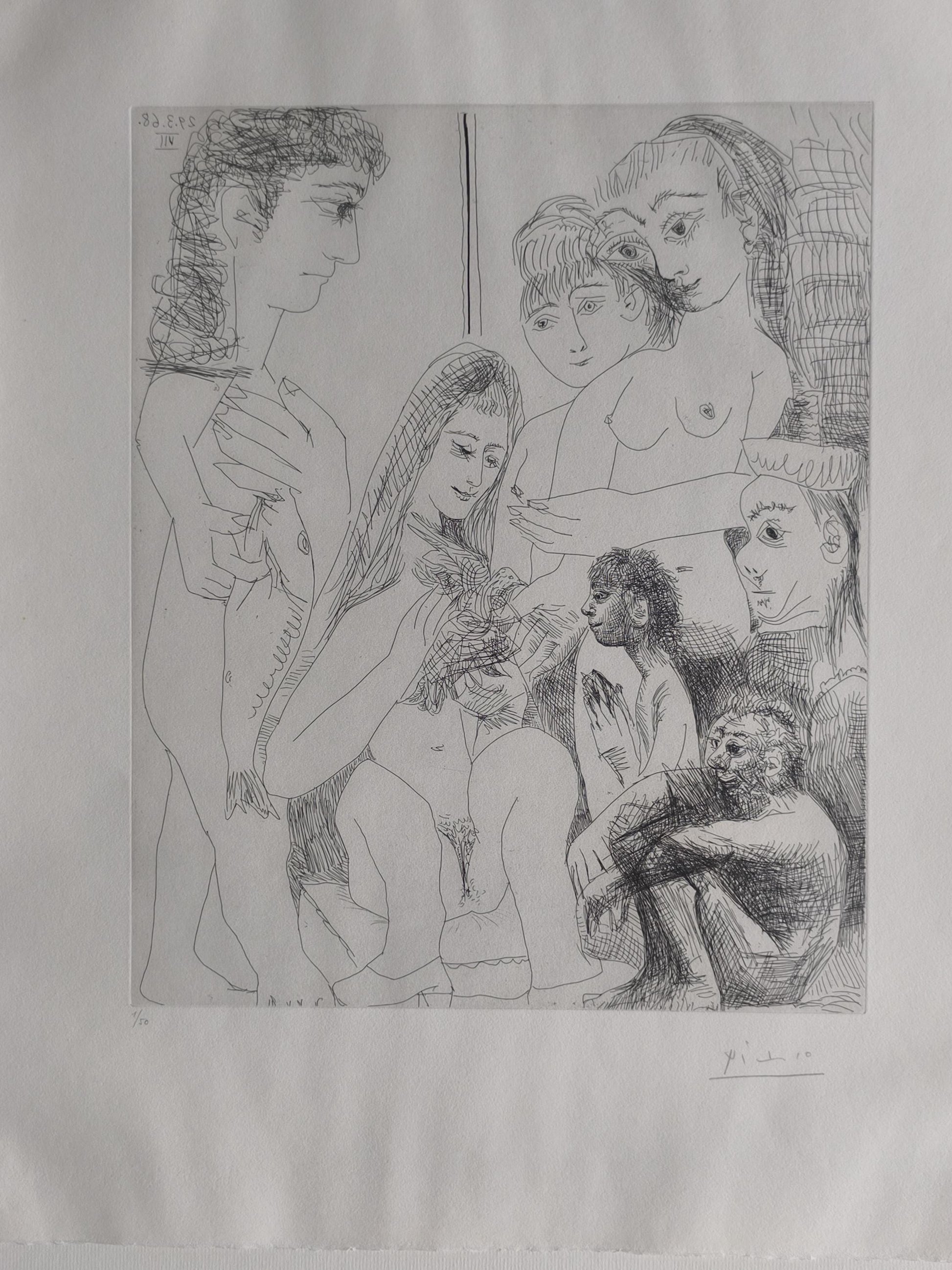Original signed lithograph by Pablo Picasso, titled "Vieil homme songeant à la peinture ancienne" (Old Man Thinking About Ancient Painting), from the iconic Series 347, catalogued as Bloch 1492. Printed in a limited edition 1 of 50 on Rives/BFK paper, this artwork is hand-signed in pencil and numbered. A powerful and intimate piece showcasing Picasso’s late-period genius. Artwork size: 62 x 74 cm.