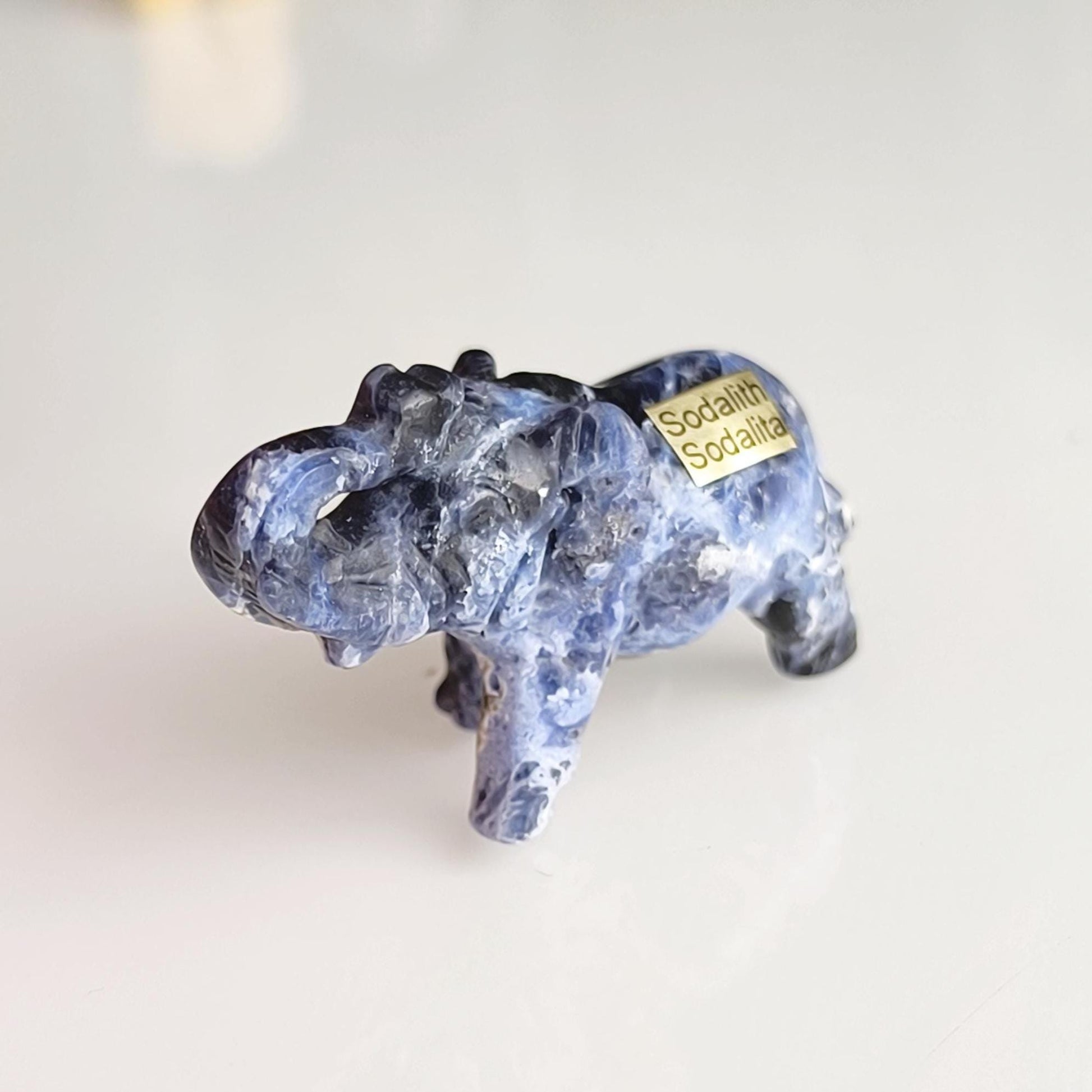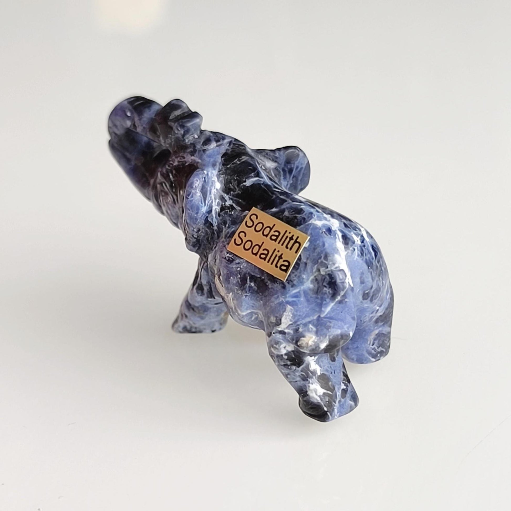 Small Blue Stone Elephant Trunk Lifted Asian Handmade 2000s