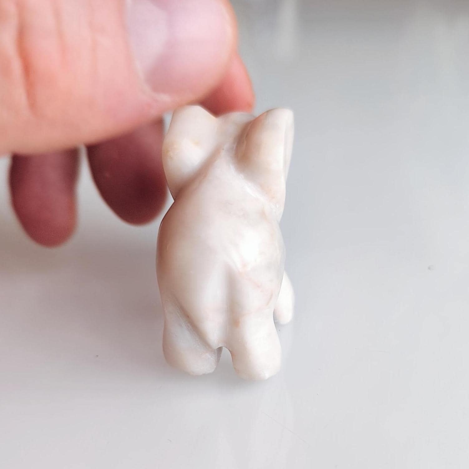 Small White Stone Elephant Statue with Red Eyes, Handmade 2000s