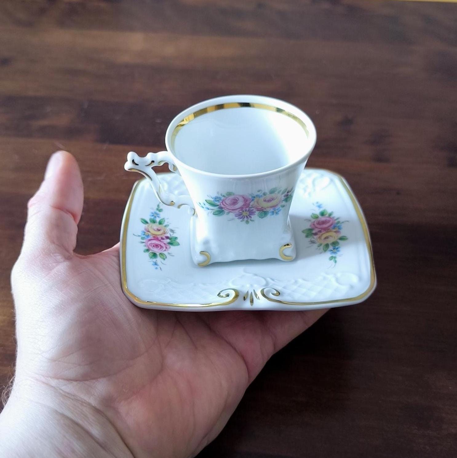 Vintage Gerold Tettau Bavaria Mocha Espresso Cup & Saucer, Floral Porcelain, 1960-1993