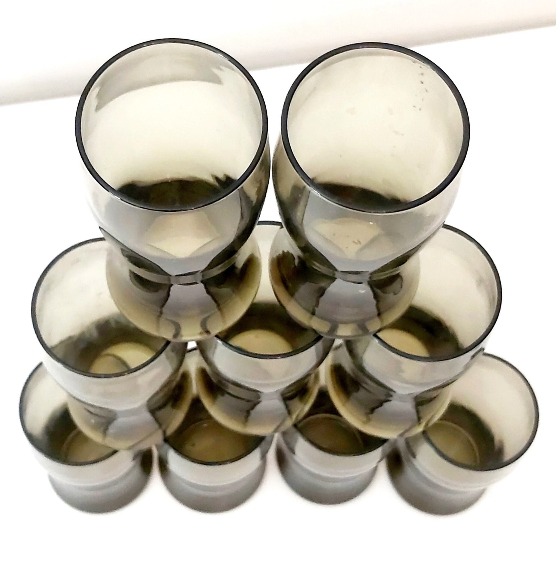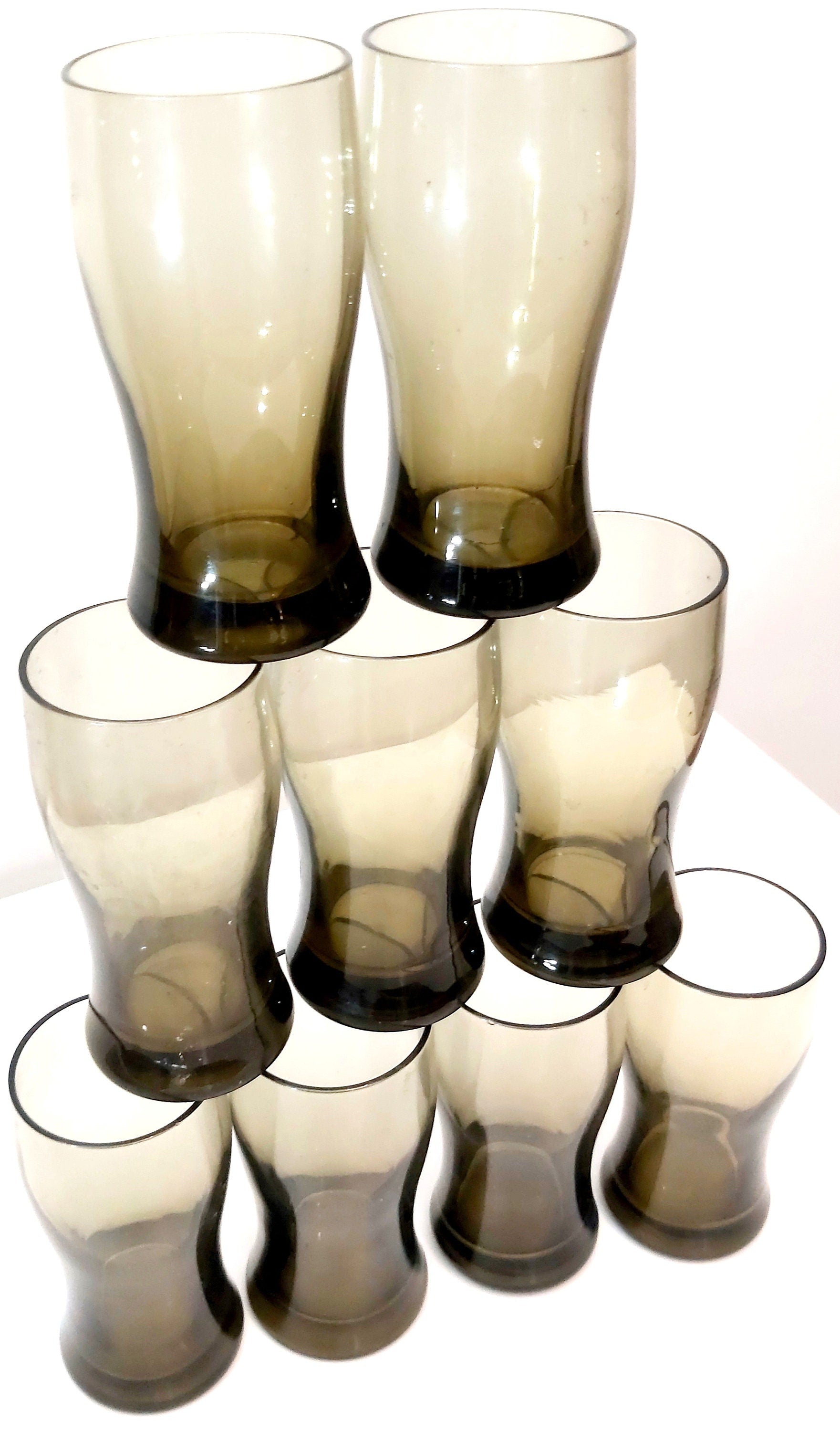 Set of 6 Vintage Smoke Brown Glass Tumbler, Vintage Smoked Glassware, Drinkware or Water Glasses, 1970s.