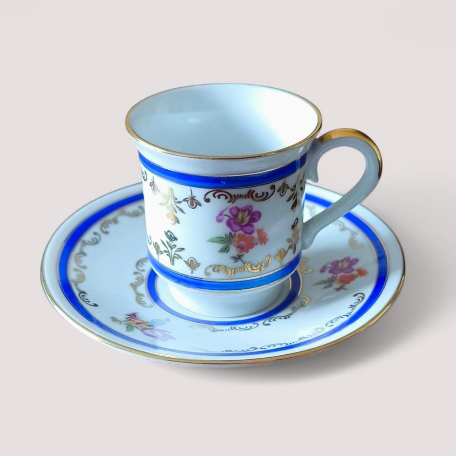 Vintage SPE Eisenberg Porcelain Coffee Cup & Saucer, Gilded, Made in GDR, 1970s