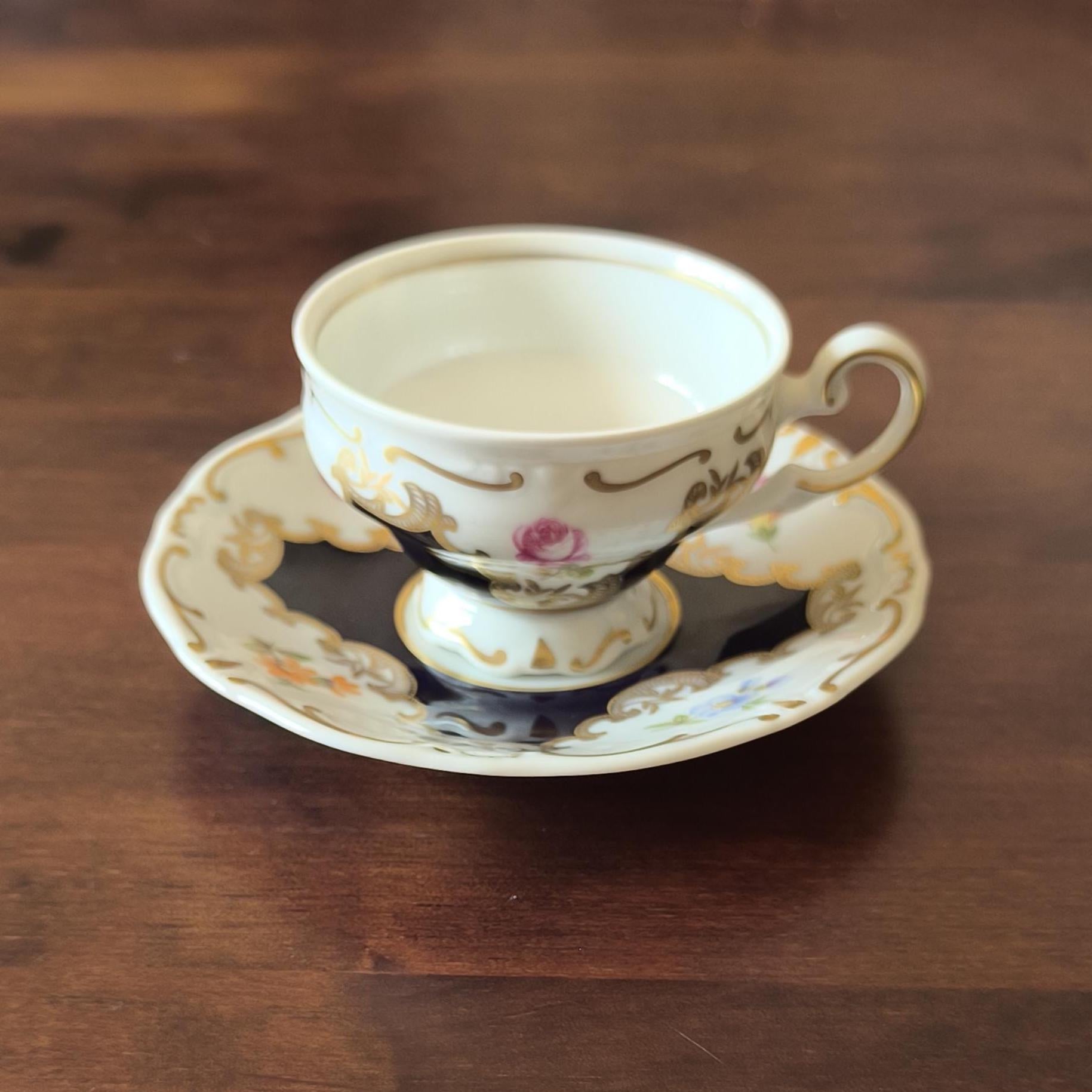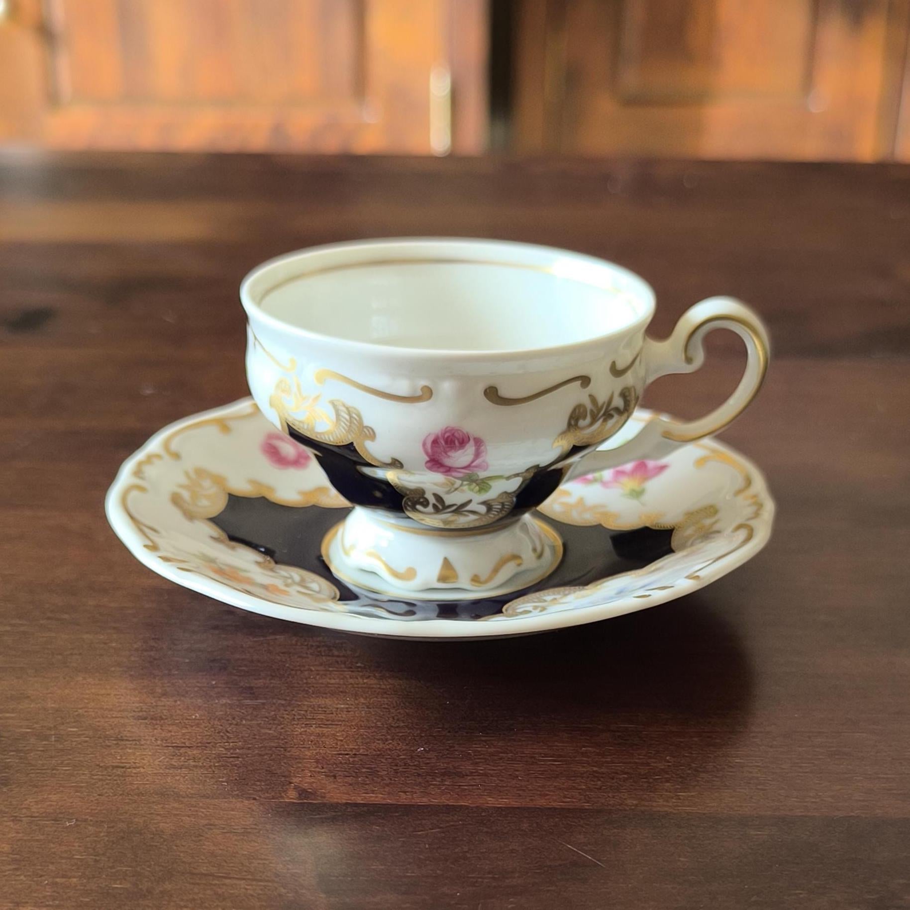 Weimar Porcelain Mocha Collector's Cup & Saucer – Hand Painted, Cobalt Blue, Gold Trim, 1970s