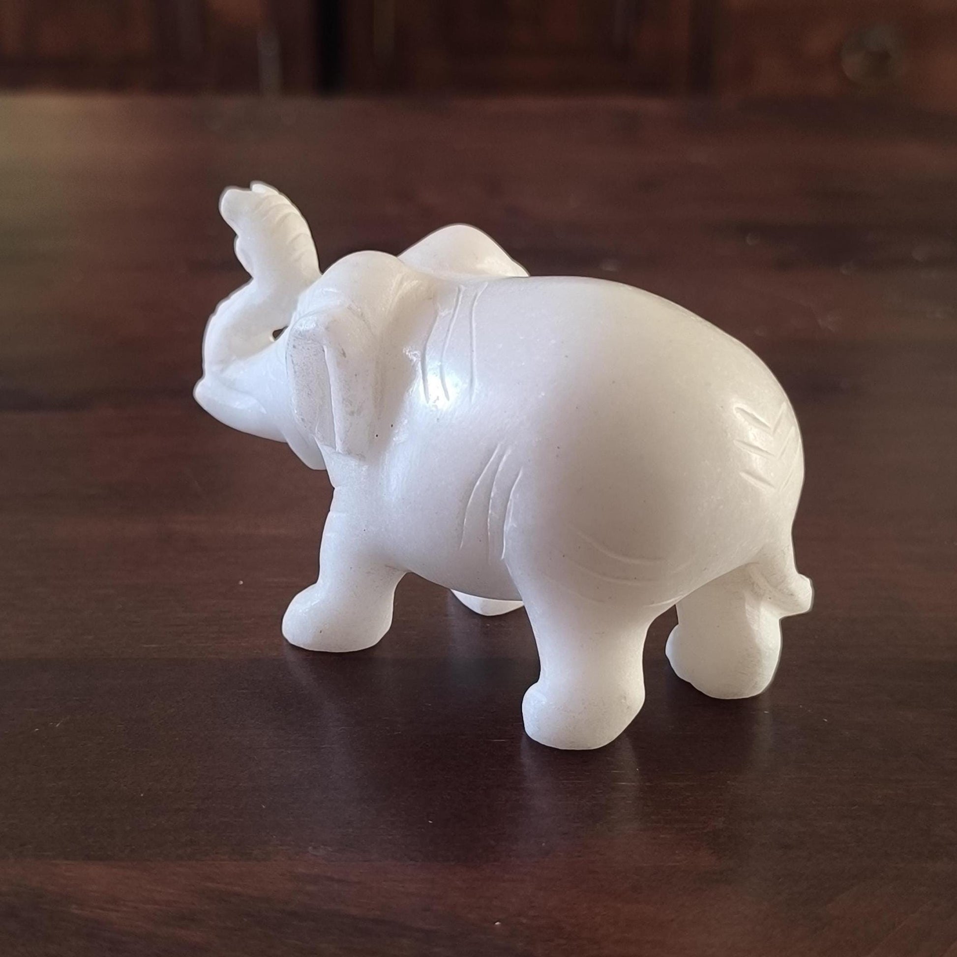 Handmade white marble stone sculpture of elephants, traditional Asian decorations. This detailed 1960s piece reflects traditional craftsmanship and cultural artistry. A unique decorative collectible for home or office.