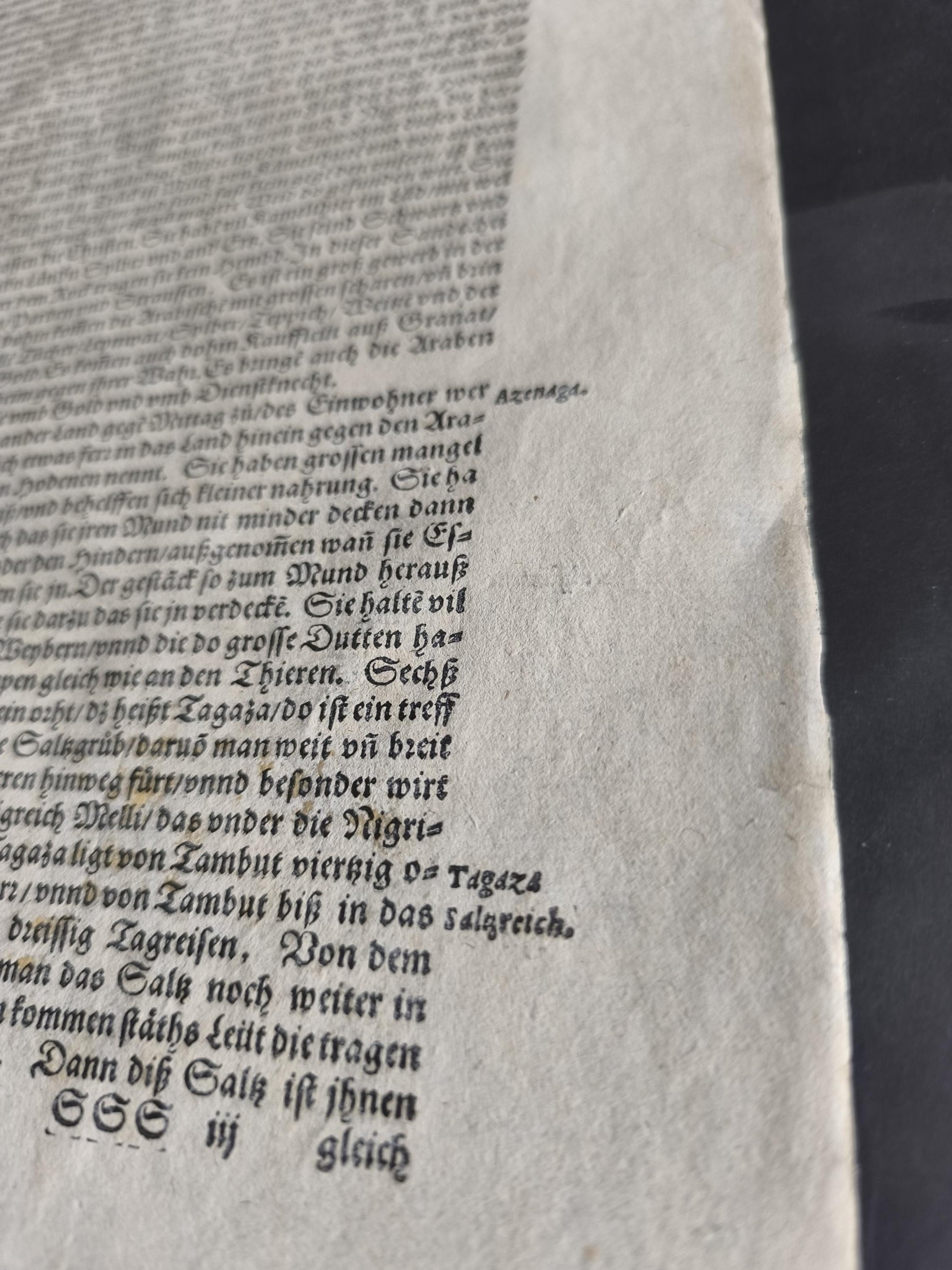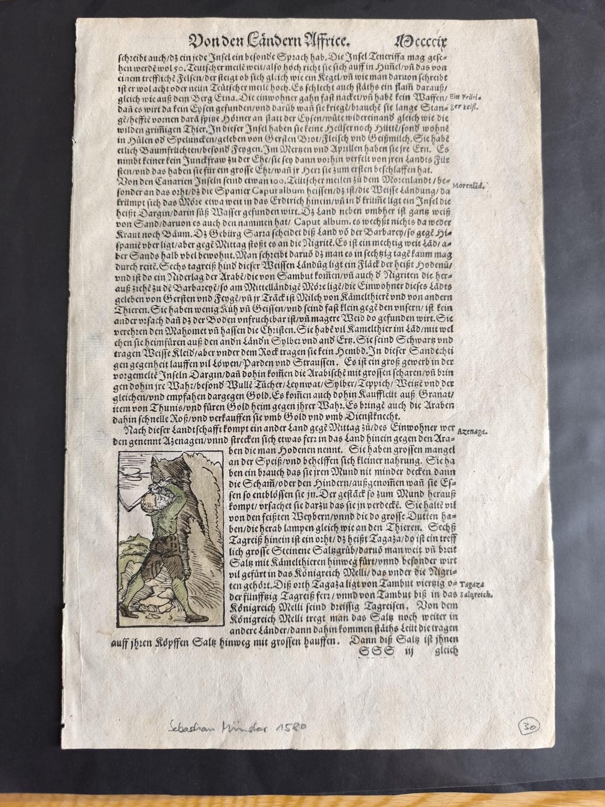 Woodcut Page from Münster’s Cosmographia, Double-Sided, ca. 1580